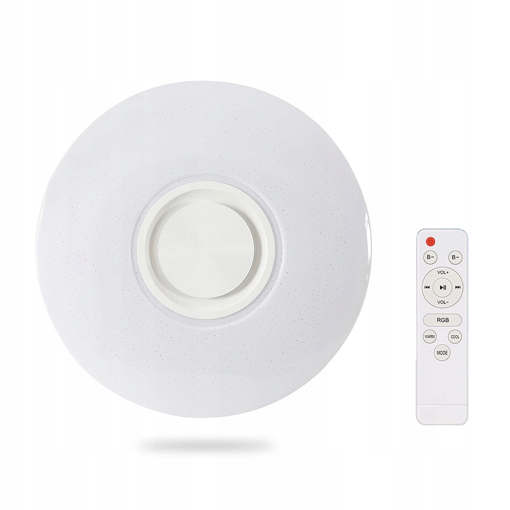Сучасний світлодіодний PLAFON діаметром 40см х 7см з вбудованим динаміком BLUETOOTH, який працює за технологією на базі Bluetooth 4.0 + EDR (підвищена швидкість передачі даних), завдяки якій ми можемо відтворювати музику з телефону чи комп’ютера. Стельовий світильник оснащений світлодіодами, які випромінюють біле світло в повному спектрі CCT, і саме колірна температура визначає колір білого світлодіода. CCT визначається в градусах Кельвіна; тепле світло становить приблизно 2700 K, змінюється на нейтрально-біле приблизно при 4000 K і на холодне біле при 5000 K або більше, крім того, кожен вибраний колір CCT можна приглушити та зробити яскравішим.