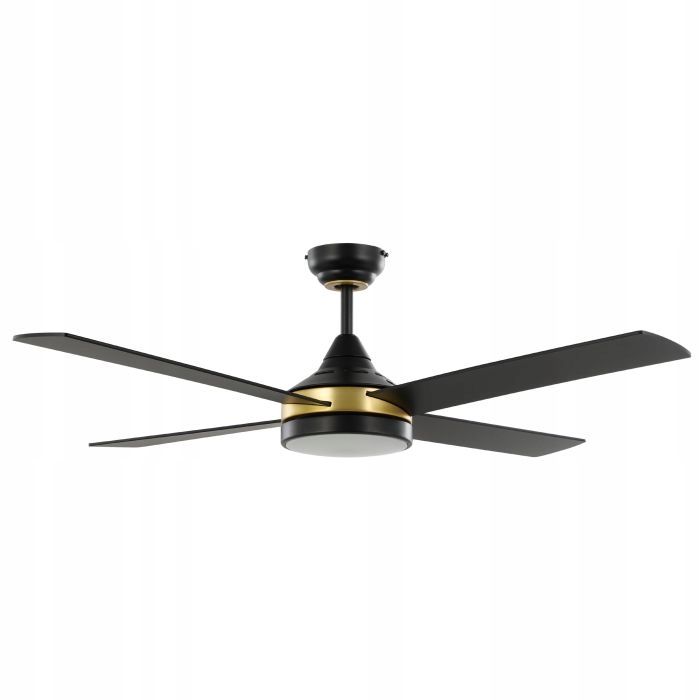 Стельовий вентилятор TRINIDAD зі світлодіодним освітленням. Вентилятор виготовлений з чорного матового металу та чотирьох лопатей МДФ такого ж кольору. Латунний елемент у центрі вентилятора надає елегантний характер. Вбудовані світлодіоди під опаловим акриловим покриттям забезпечують приємне світло. У вас є вибір між теплим білим, нейтральним білим і холодним білим світлом. Пульт дистанційного керування також пропонує можливість вибору додаткових комфортних функцій: 3 різних рівня швидкості, таймер і перемикання між літнім і зимовим режимами. Завдяки реверсивному напрямку обертання (робота влітку і взимку) вентилятор можна використовувати цілий рік і забезпечує приємний мікроклімат в приміщенні. Стельовий вентилятор з незмінним дизайном має вбудований двигун змінного струму (AC). Стельовий вентилятор діаметром 122 см ідеально підходить для приміщень площею 20-27 кв.м.
