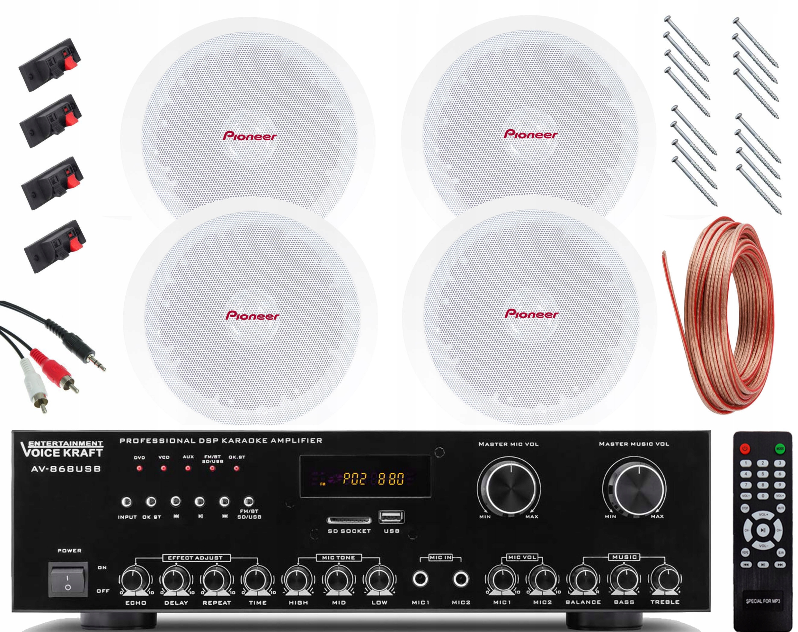 Стельові накладки, що входять до комплекту, відрізняються високою якістю виконання, довговічністю та простотою монтажу. Рама виготовлена з якісного матеріалу, а фасад, покритий білим лаком, чудово виглядатиме в будь-якій кімнаті. Решітки білосніжні і не мають логотипу Pioneer.