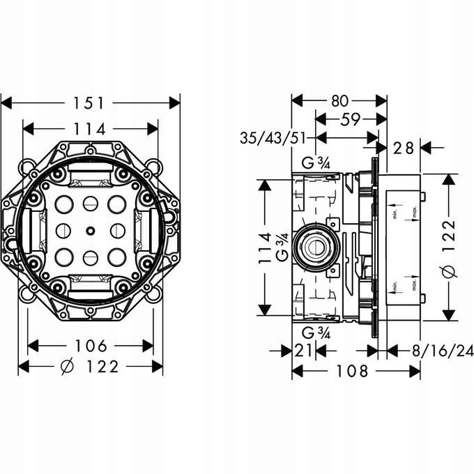 - мінімальна глибина монтажу: 80 мм