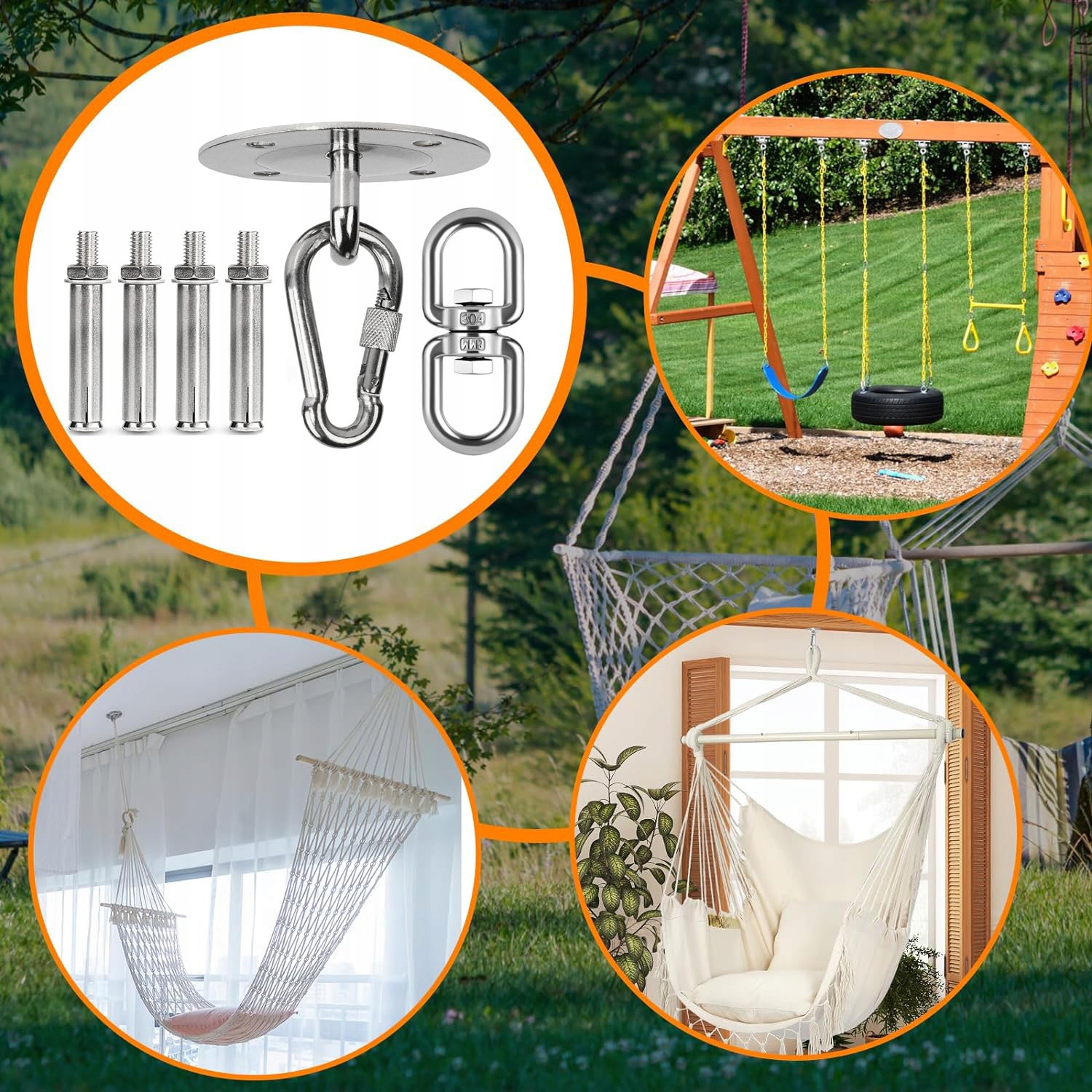 ✅ міцний гачок маятника: обертовий з 360 ° стельових гачків для набору гойдалок може витримати до 400 кг з високою вантажопідйомністю, завдяки якому вони ідеально підходять для призупинення крісла гамака, гойдалки, мішка та смуга йоги як всередині, так і зовні. Він також може бути використаний для вивішення важких предметів у гаражі.