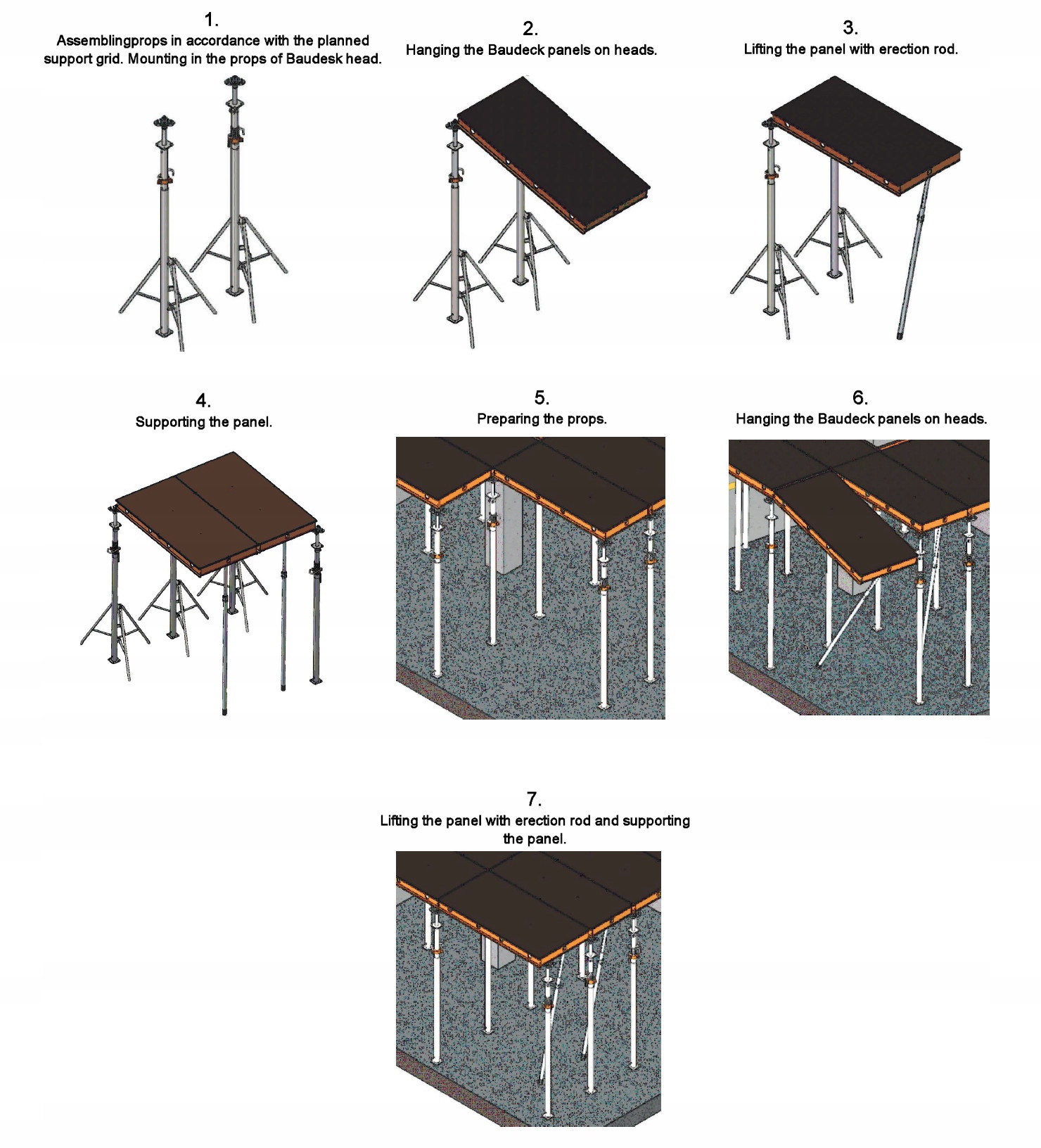 Алюмінієва опалубна система BAUDECK – це легка та універсальна щитова опалубка для економічного та безпечного кріплення плит, особливо у великих конструкціях. Завдяки тому, що ця система складається лише з двох основних елементів: панелі та опори, а також легкості та простоті використання, ця опалубка є ідеальним рішенням на будь-якому будівельному майданчику.
