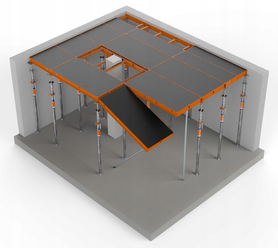 Широкий діапазон розмірів панелей дозволяє збирати опалубку набагато швидше та економніше, ніж традиційну опалубку для стелі.