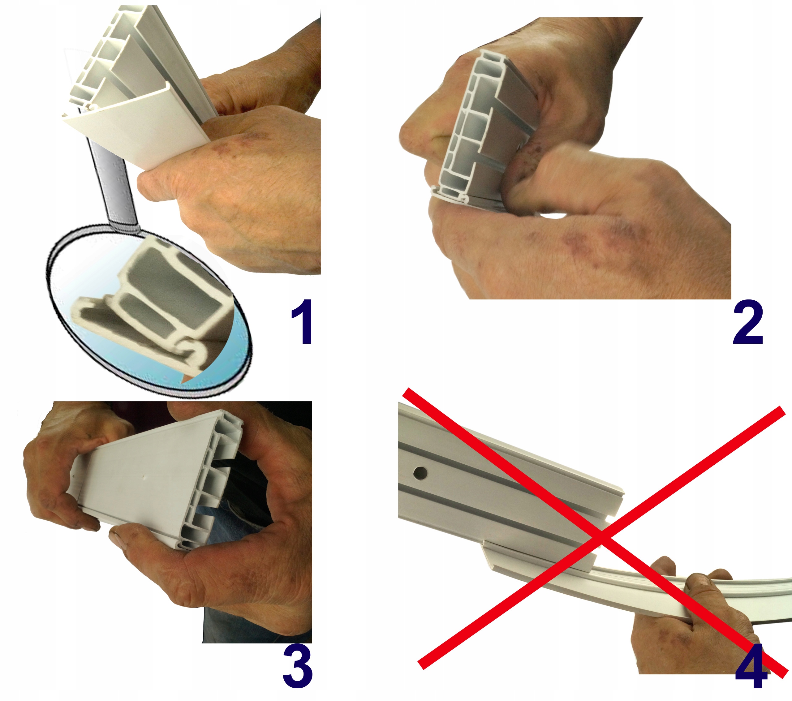 - З'єднувачі вставляються в профільні канали, які не використовуються жабками (1), посилюючи з'єднання (вони входять відносно важко);