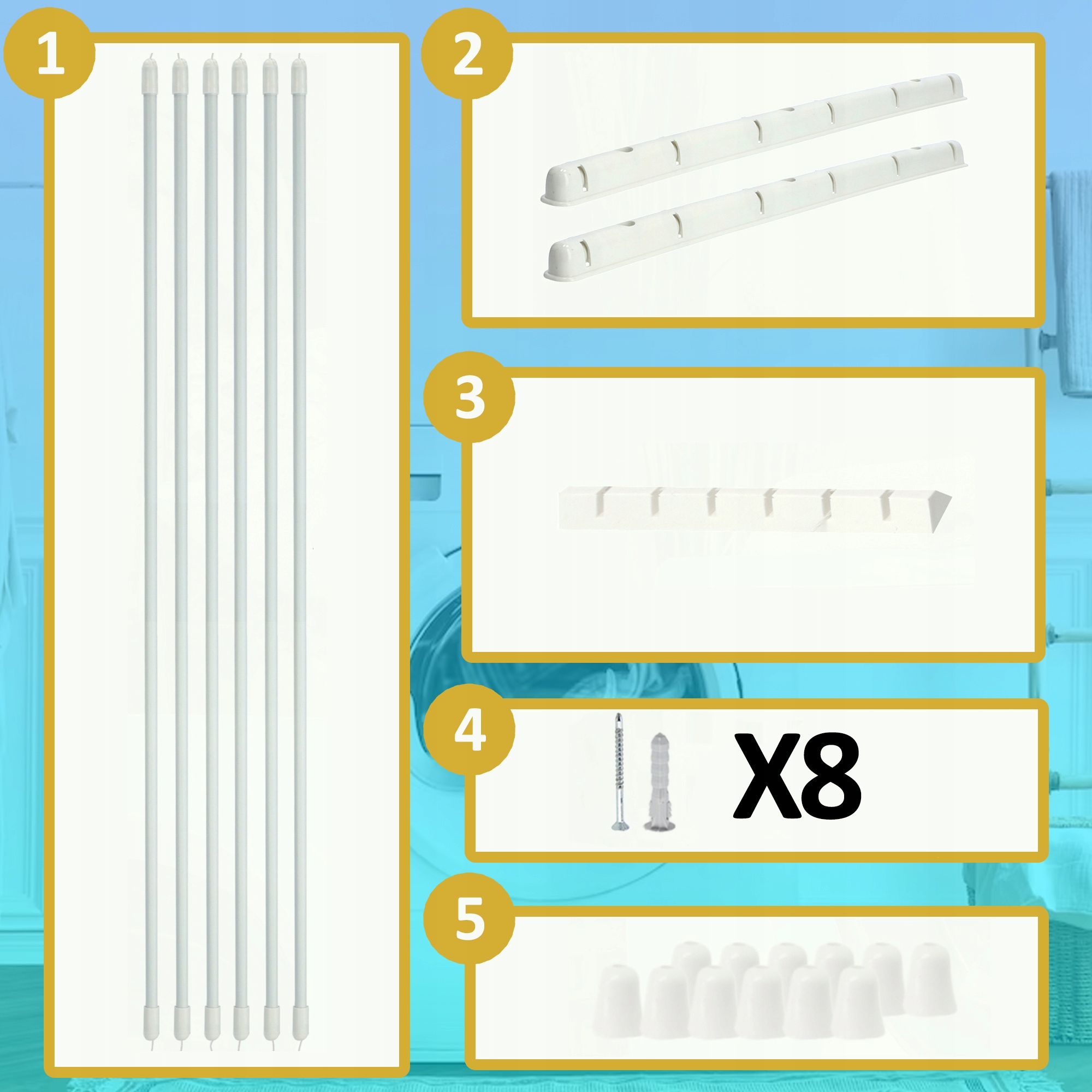 6 стрижнів, по 200 см кожна, що дають загалом 12 метрів білизни!