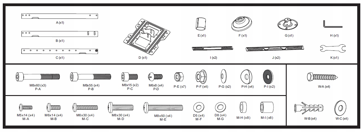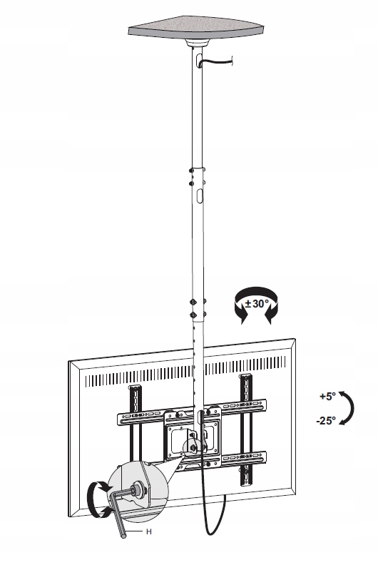 - Набір містить набір кріпильних гвинтів для стелі та для кріплення телевізора та польську інструкцію зі складання