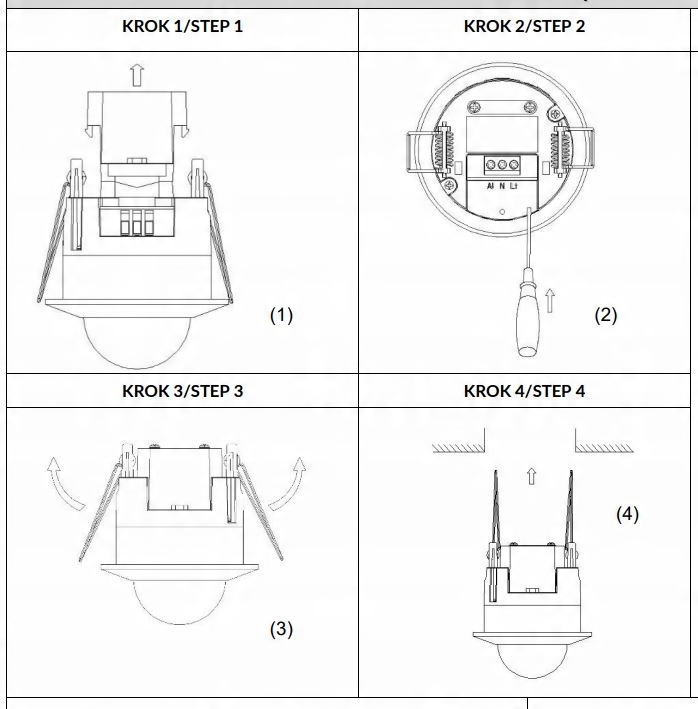 Датчик призначений для установки в підвісні стелі, використовується для керування освітленням або іншими електричними пристроями. Потрійна система датчиків руху з датчиками, розташованими під спеціальним кутом, забезпечує контроль за всією територією. Пристрій підходить для використання у великих приміщеннях, наприклад, складах, залах очікування. Потенціометри для регулювання: часу освітлення та чутливості до інтенсивності світла. Датчик працює зі світлодіодним освітленням.