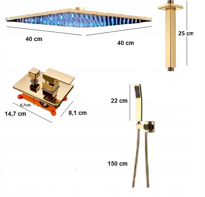Стельовий душовий гарнітур gold - Gold 40 LED
