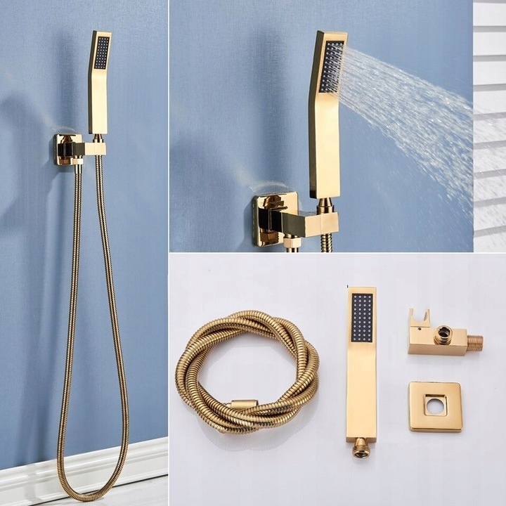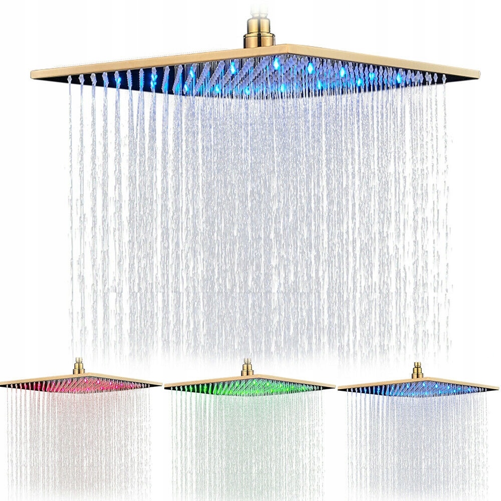 Стильний і сучасний душовий набір кольору поліроване золото - ВЕРСІЯ З ПІДСВІЧЕННЯМ ВЕЛ. Світлодіодний ДОЩОВИЙ душ, МЕТАЛЕВИЙ ДУШ РУЧНИЙ ТА МОНТАЖНА КОРОБКА