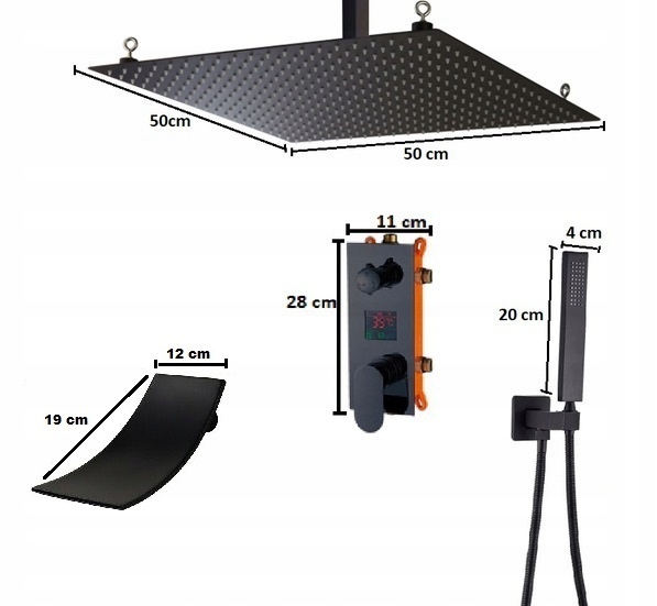 Представляємо вашій увазі стельовий душовий набір Black Big 50 LCD Waterfall. та вилив водоспад