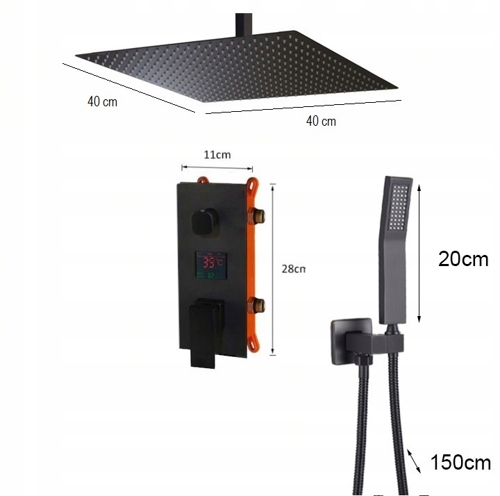 Стельовий душовий набір чорний -BLACK 40 LCD