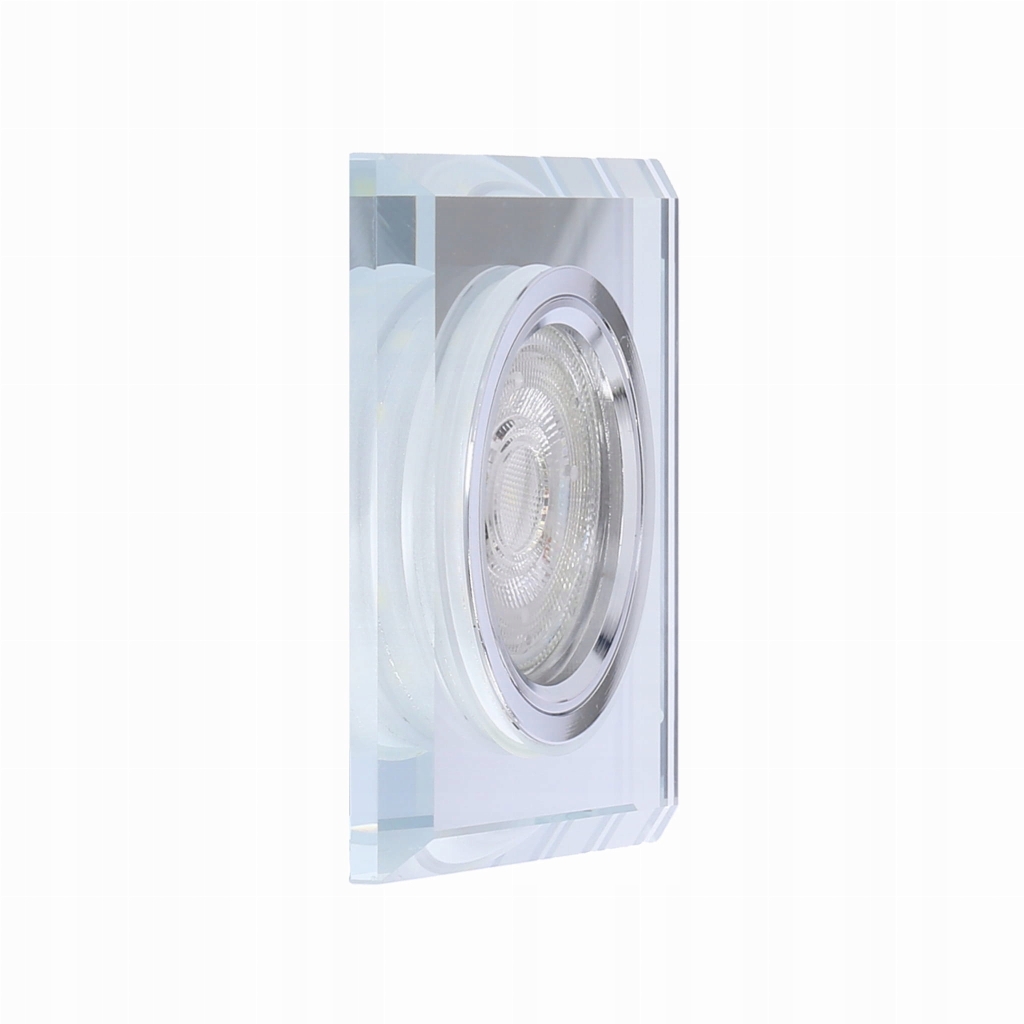 Хіт продажів скляний стельовий світильник зі стандартним цоколем GU10 для змінних ламп і декоративно-функціональною світлодіодною стрічкою потужністю 2,1 Вт; призначений для установки в підвісні стелі та інші конструкції, включаючи спеціальний електронний блок живлення та монтажні пружини; можливість незалежного освітлення світлодіода і GU10 після використання двоконтурного вимикача; доступний у 6 кольорах світлодіодів, у квадратній та круглій версії. Вони чудово виглядають окремо або як групове освітлення, створюючи унікальні ефекти, які підкреслюють індивідуальний характер освітлених приміщень.У комплект світильника входить патрон GU10.