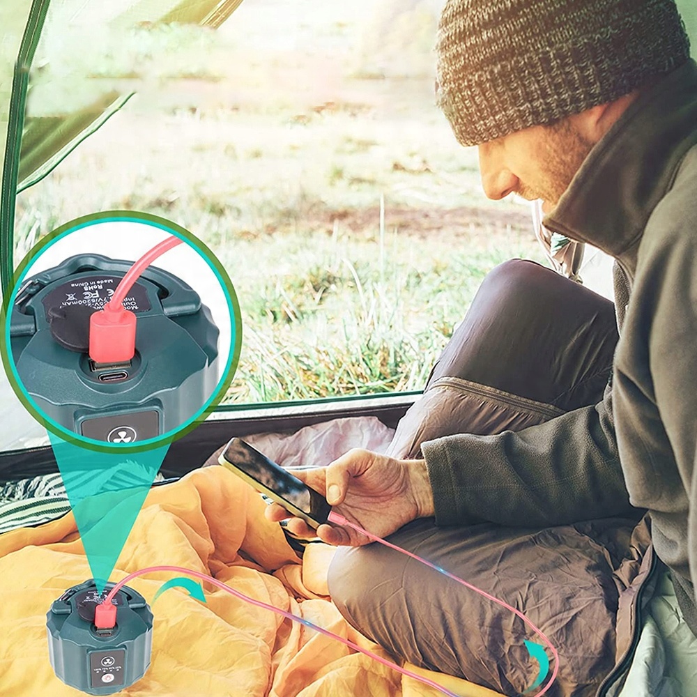 - Наш кемпінговий вентилятор має міцний корпус із АБС-пластику та лопаті вентилятора, щоб запобігти падінню та пошкодженню ліхтаря для кемпінгу на вулиці.