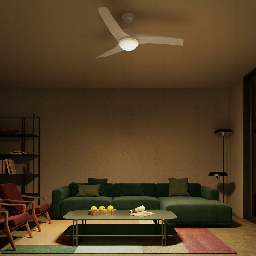 Глянцевий білий колір створює унікальний естетичний досвід. Сучасна форма, що нагадує гвинт літака, гарантує високу ефективність з обмеженим шумом.