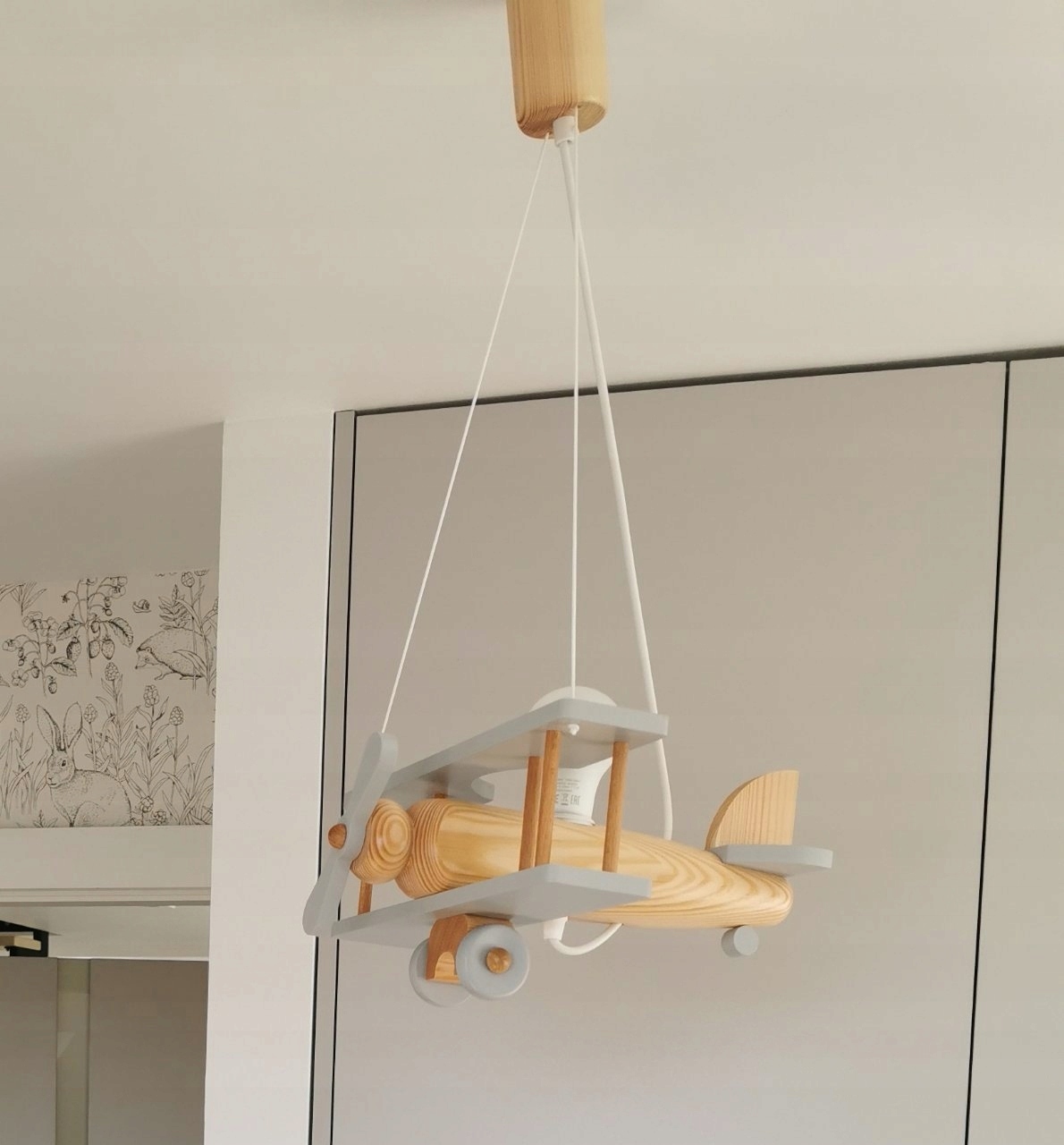 - ТАК, світильник можна розмістити в дитячій кімнаті. Завдяки регулюванню троса і ниток, що утримують крила лампи, ви можете регулювати висоту ЛІТАКА відповідно до ваших потреб. Однак пам’ятайте, що кабелі в лампі Small Plane можна вкоротити максимум на 20 см. Щоб підвісний світильник зберігав прямий кут і біля стелі було місце для лампочки.