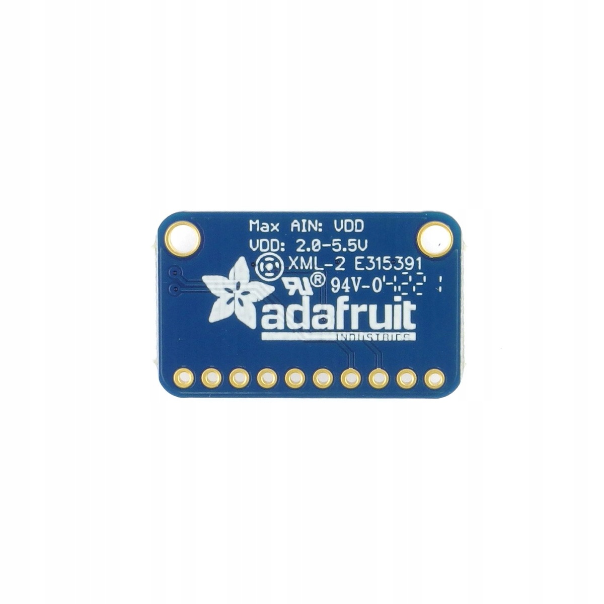 Модуль з 4-канальним АЦП перетворювачем ADS1015, який дозволяє зчитувати напруги в одному режим сигналу або диференціальні сигнали з частотою дискретизації до 3,3 кГц і роздільною здатністю 12 біт. Він ідеально підходить для швидкого та точного вимірювання напруги постійного струму в широкому діапазоні. Має вбудований програмований підсилювач (до х16), що дозволяє підсилювати низькоамплітудні сигнали на повний діапазон. Модуль сумісний з контролерами 3,3 В і 5 В, зв'язок відбувається через інтерфейс I2C (роз'єм STEMMA QT). Повна документація доступна на веб-сайті продукту.