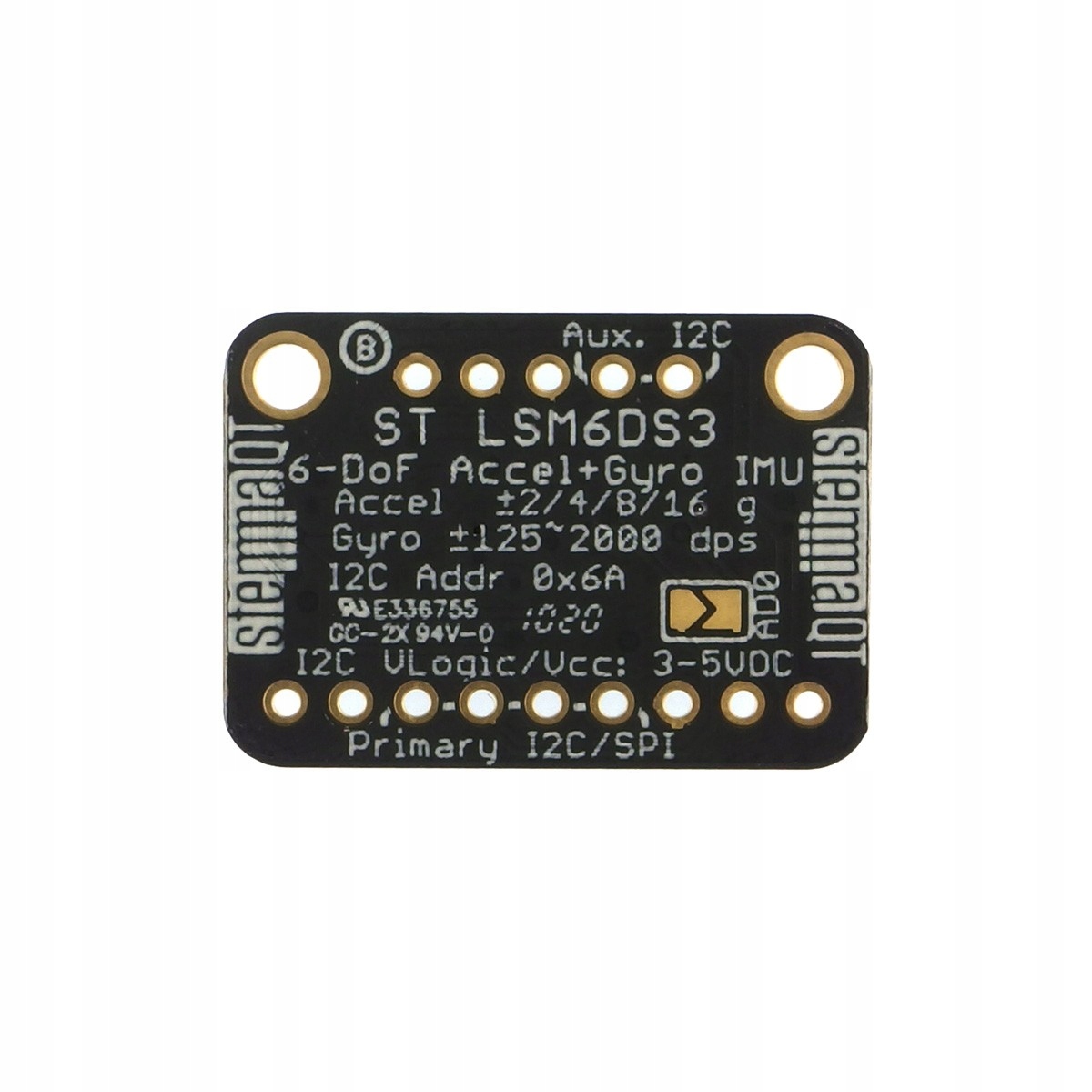 модуль з 6-осі LSM6DS3TR-C-IMU Датчика (Accelerometer and Gyrosc), який дозволяє вимірювати Accececeart in Accelerometer and Gyroscope) ± 2/± 4/± 8/± 16 г та швидкість обертання ± 125/± 250/± 500/± 1000/± 2000 дп. Він має вбудований перетворювач рівня напруги, тому він може працювати з системами 3,3 В і 5 В, а зв'язок відбувається через інтерфейс I2C (роз'єм STEMMA QT) або SPI. Повна документація з прикладами доступна на веб-сайті продукту.