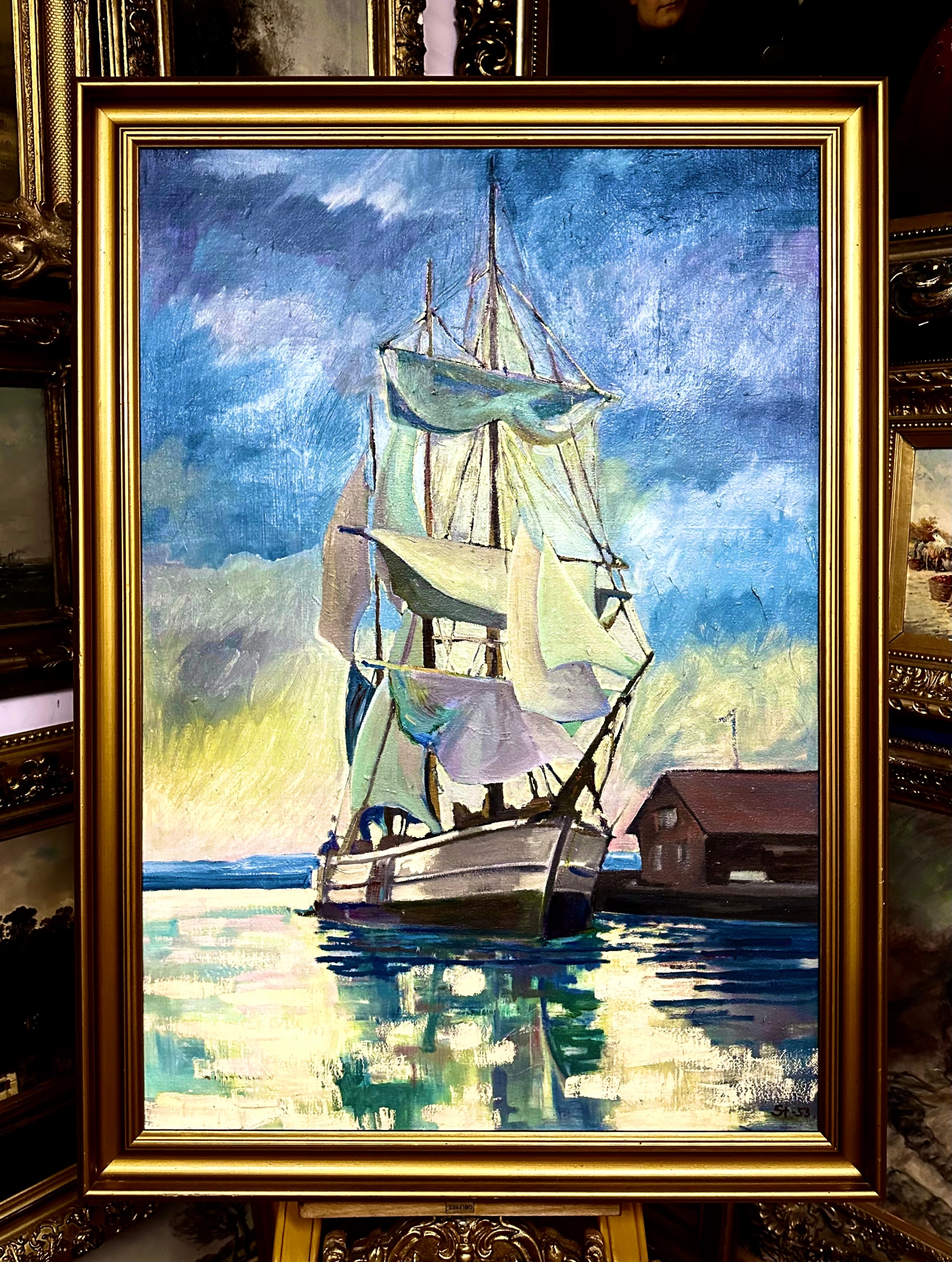 Стен БІЛЛЕ 1890-1953) ВІТРИЛЬНИК У МОРЕ ЛІТНЬОГО ВЕЧОРА ВЕЛИКИЙ ЦІННИЙ КАРТИНА