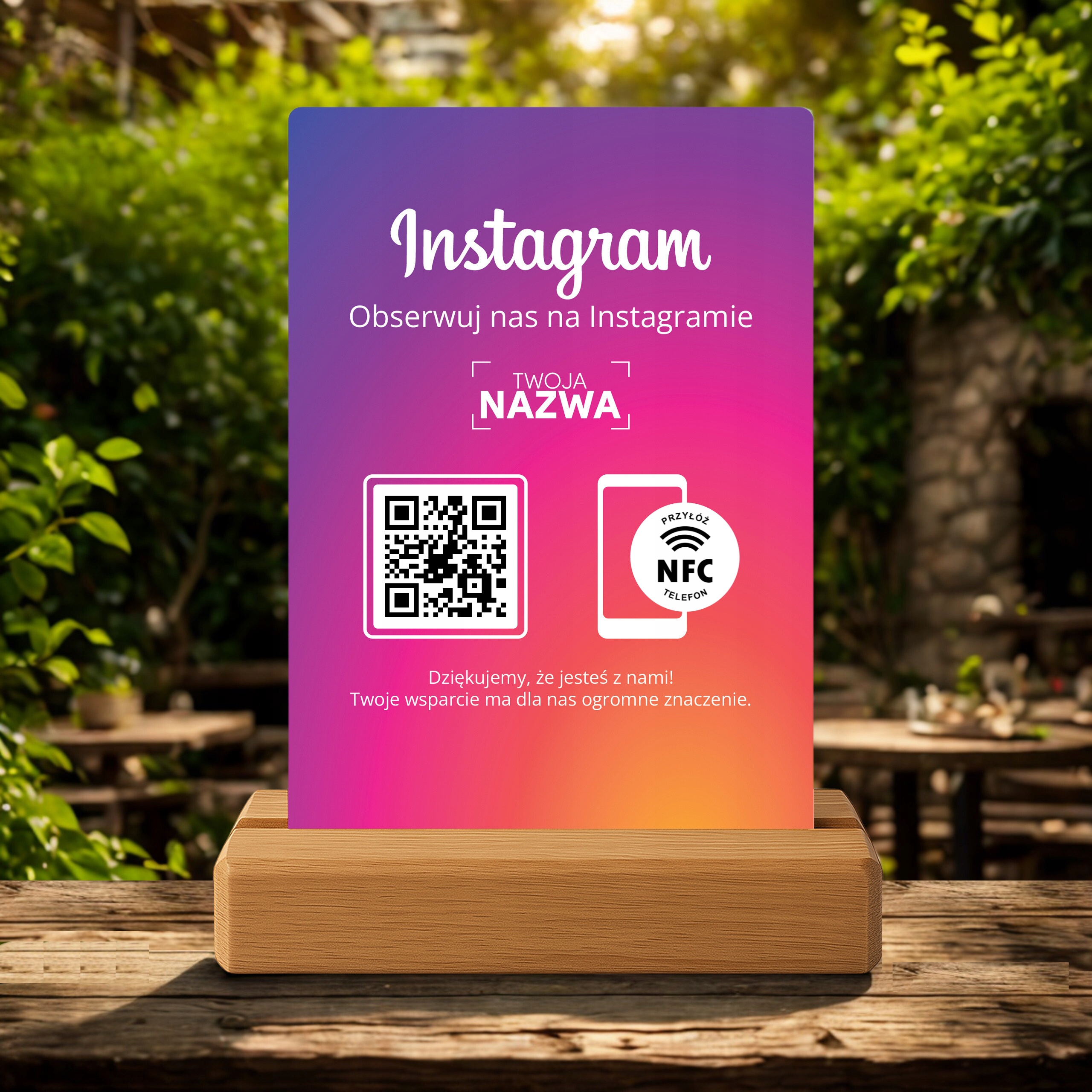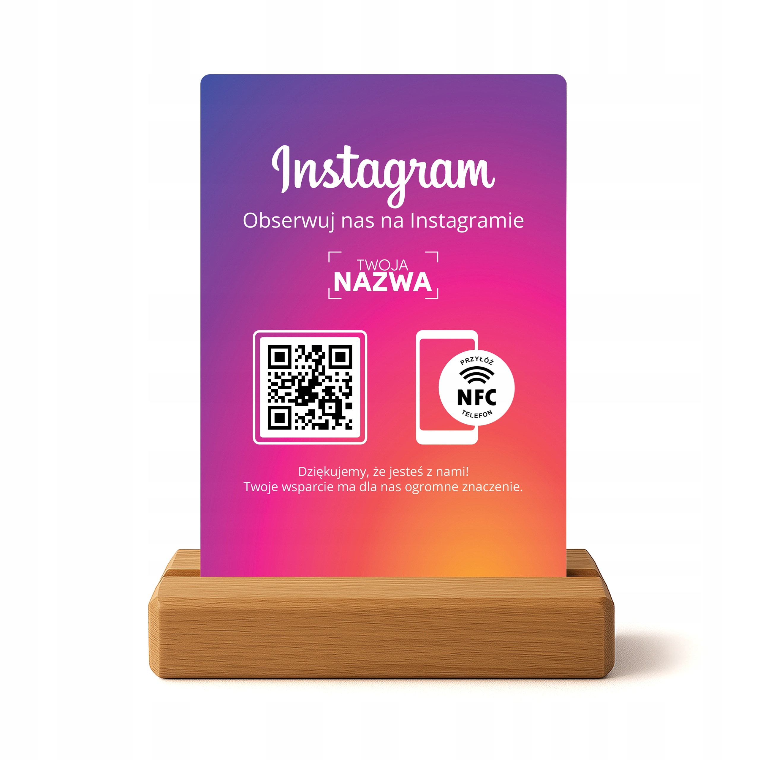 Естетична підставка Instagram із QR-кодом і технологією NFC – це спосіб ефективно заохотити клієнтів стежити за вашим профілем. Ми персоналізуємо знак із назвою вашого облікового запису, щоб він виглядав професійно та створював впізнаваність бренду.