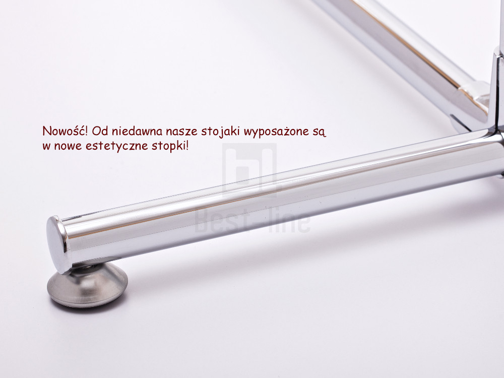 Опис: Підставка для одягу з системою труба-кулька з хромованої труби ø25 мм.
