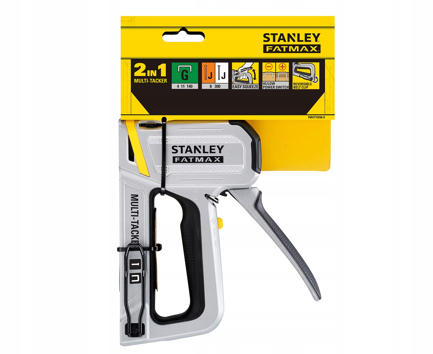 Stanley® FATMAX® 2-W-1 Multi Tacker ідеально підходить для багатьох професійних додатків, , включаючи для кріплення рейків та гіпсової дошки до гіпсової картки, захист килимів, захисту килимів, огорожі та руфінгу . У ньому є механізм запобігання заклинювання безперервного використання та надійної роботи, а також налаштування високої та низької потужності для контролю інтенсивності основного застосування. Підтримує скоби типу G та високі підбори