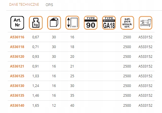 СТЕПЛЕР СТЕПЛЕРИ Довжина 20 мм ТИП 90 Ga18 A536120