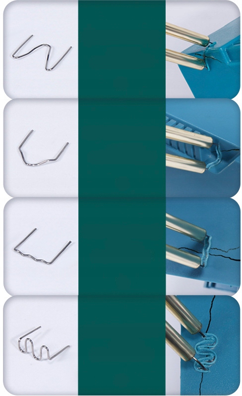 ✅ Завдяки формі наконечників можна виконувати зварювання поверхонь для з’єднання тріщин або використовувати їх як скоби. Для цього втопіть наконечник поперек тріщини і зніміть його зі зварювальної вилки. Після того, як матеріал охолоне, загніть виступаючі кінці так, щоб вони відламалися врівень із поверхнею шва.