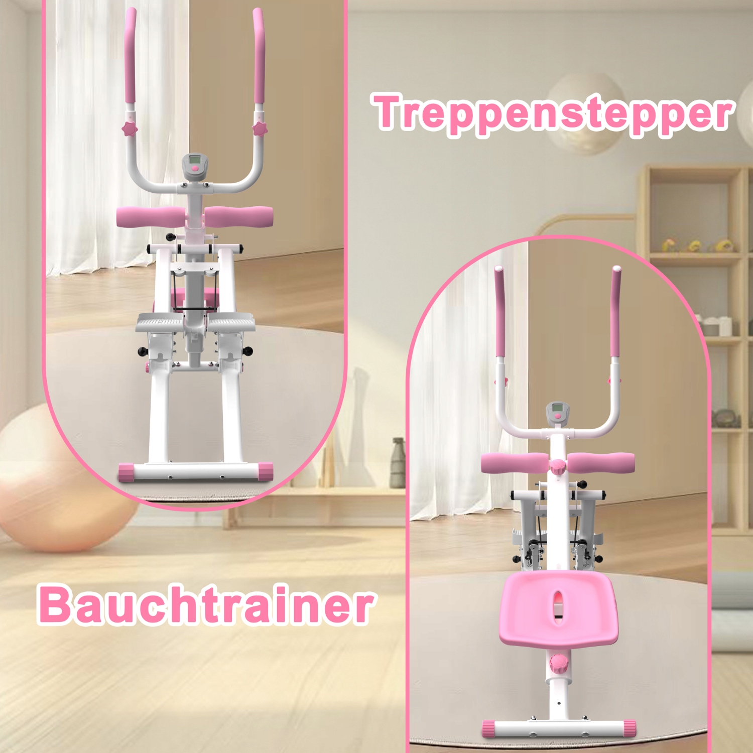 【Багатофункціональне фітнес-обладнання 2-в-1】 Плавне перемикання між степпером і тренажером для преса - один компактний пристрій замінює дороге тренажерне обладнання. Ідеально підходить для любителів фітнесу та професіоналів, які хочуть створити комфортне середовище для тренувань вдома.