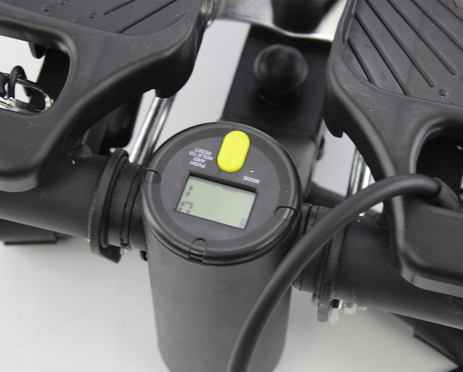 - Вбудований комп'ютер із цифровим відображенням кількості кроків, часу тренування та витрачених калорій