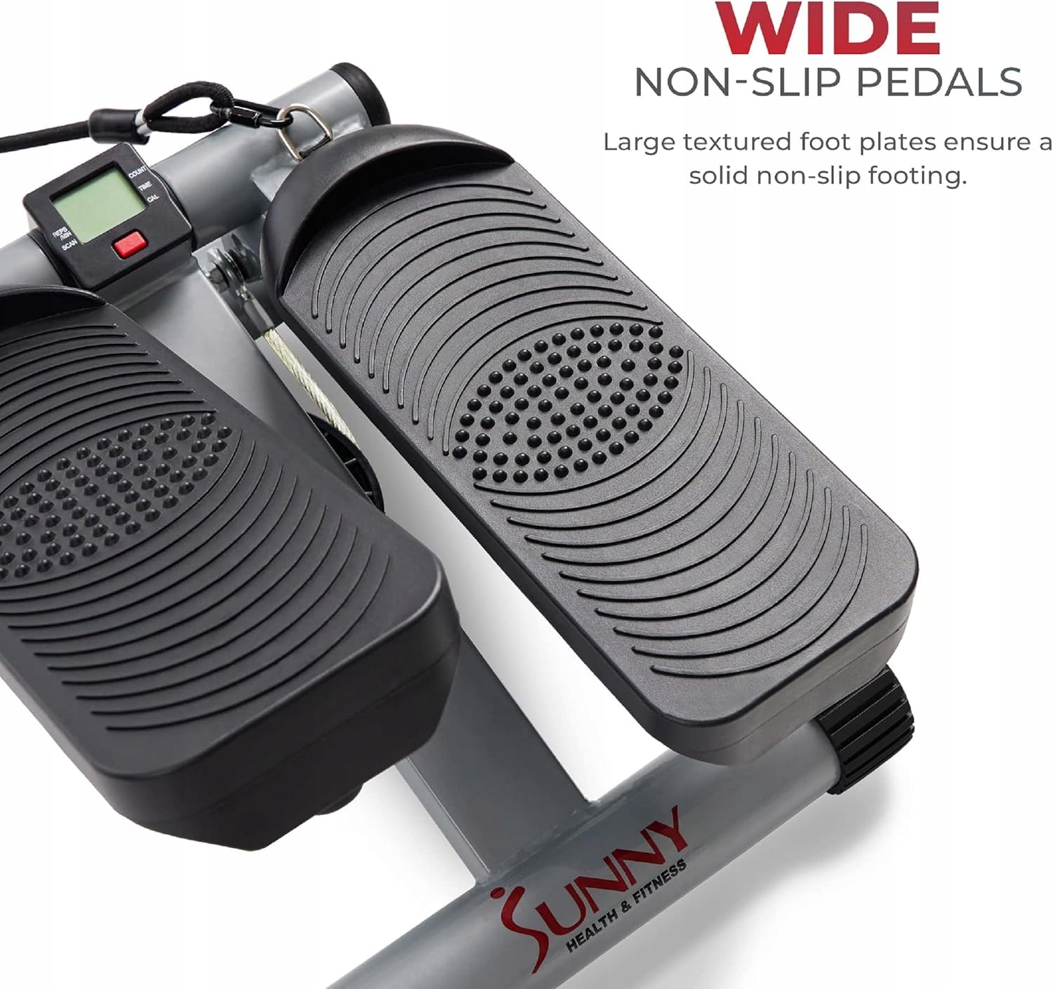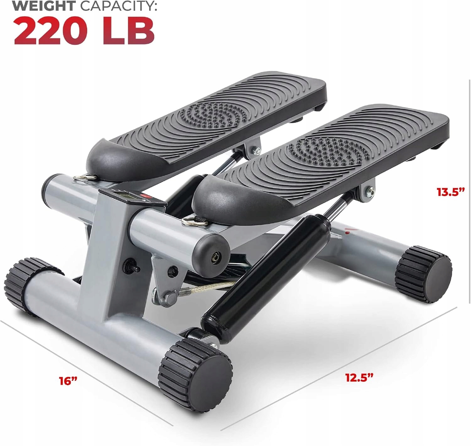 ШИРОКІ ПРОТИКЛИЗКІ ПЛАСТИНИ: великі текстуровані пластини для ніг забезпечують міцну неслизьку основу. РЕГУЛЮВАННЯ ВИСОТИ: ручка регулювання висоти регулює висоту кроку як для коротких, так і для довгих кроків. Система гідравлічного приводу: цей тренажер із системою гідравлічного приводу забезпечує плавні крокові рухи. ТІЛО: Оснащено знімними ременями для тренувань. Цей високоякісний степпер тренує понад 20 різних м’язів кора за допомогою аеробних вправ із низьким навантаженням. Відстежуйте свою фізичну форму: РК-монітор вимірює кроки, час, загальну кількість і калорії, роблячи ваші вправи більш обґрунтованими та ефективними.