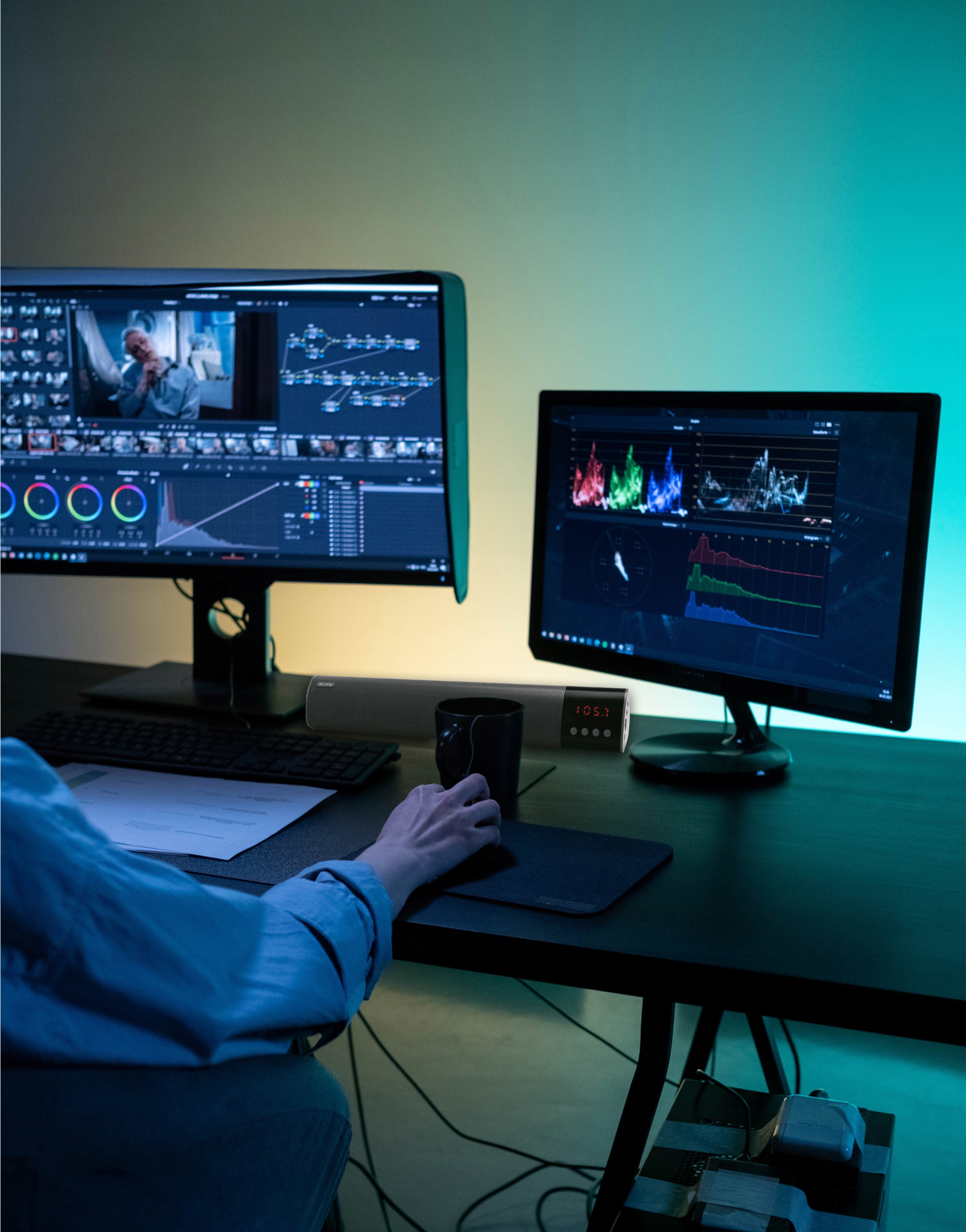 побудований -in Сильний акумулятор 2200mAh дозволяє працювати протягом декількох годин. Суцільна конструкція тривалий час забезпечує довговічність продукту. Він ідеально впишеться в інтер’єр будь -якої вітальні чи спальні. Крім того, передня панель має цифровий дисплей.