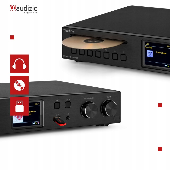 У вас є стос компакт-дисків, які ви любите слухати? Навіть тоді Брешія - це те, що ви шукаєте. Вбудований програвач компакт-дисків, природно, відтворює всі оригінальні компакт-диски, а також ваші власні записані MP3. Якщо ви зберегли багато музики в цифровому вигляді, ви можете розмістити власний список відтворення на USB-накопичувачі або передавати музику через вашу (домашню) мережу через медіаплеєр UPnP/DLNA.