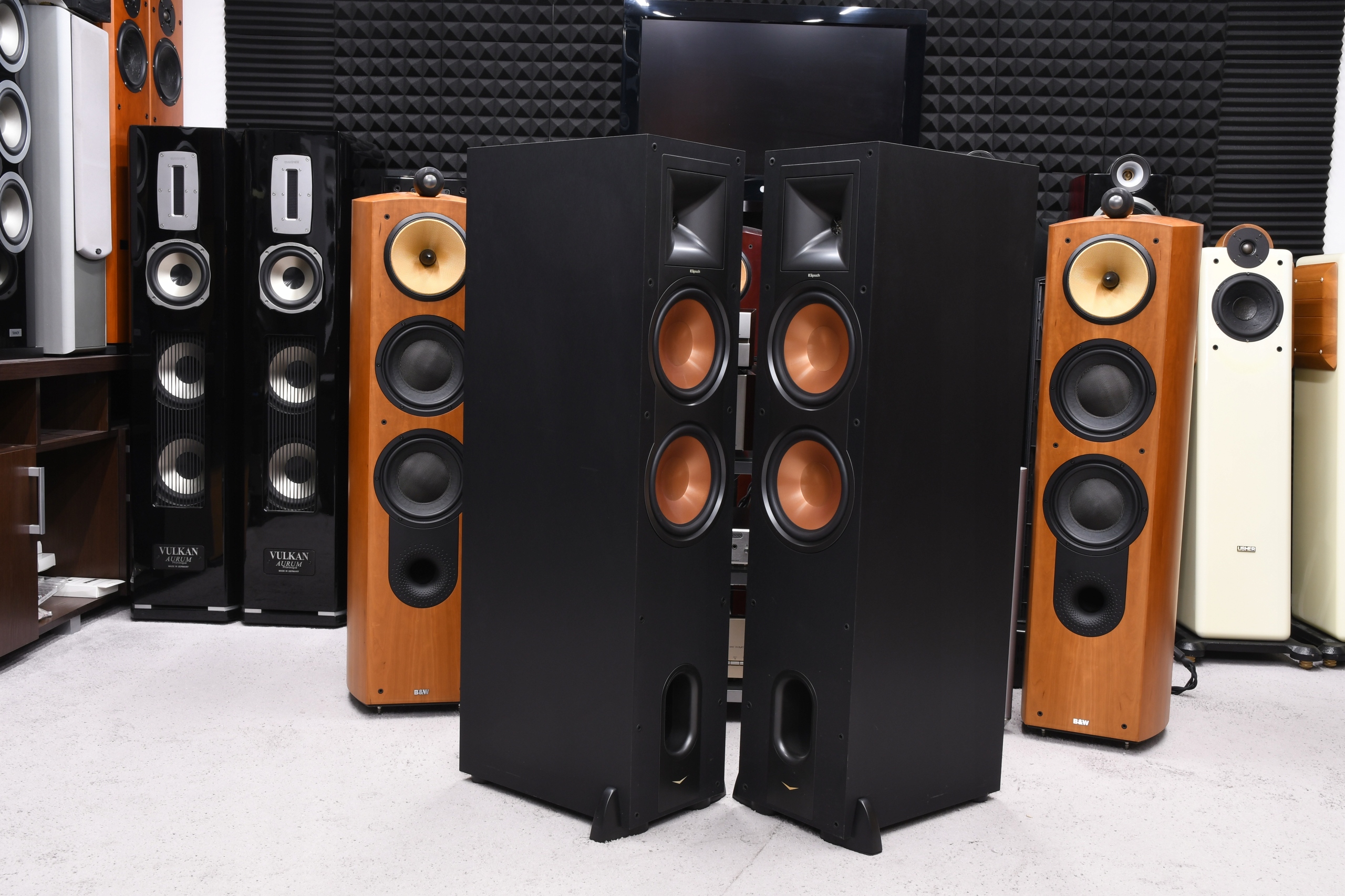 Використовується набір стовпців Klipsch r -28f у чорному кольорі.