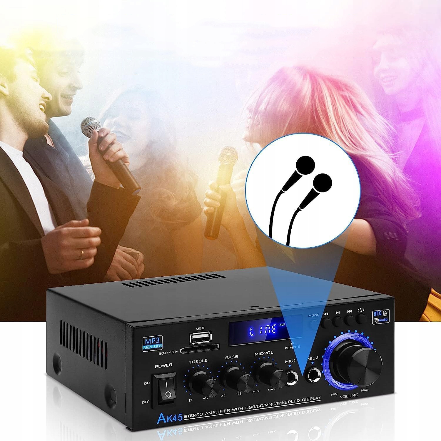 🎶 Оновлена версія цифрового підсилювача звуку AK-45. Повністю оновлений дизайн, номінальна потужність 40 Вт + 40 Вт, ідеально підходить для пасивних динаміків 4-8 дюймів. Розширення функцій, додавання гнізда для мікрофона. Крім того, якість звуку ресивера з цифровим підсилювачем краще, ніж у звичайних аналогових підсилювачів. З вбудованою платою передачі живлення, яка підтримує вхідне джерело живлення змінного струму 110-240 В і вхідний струм постійного струму 12 В/5 А, готовий до використання.