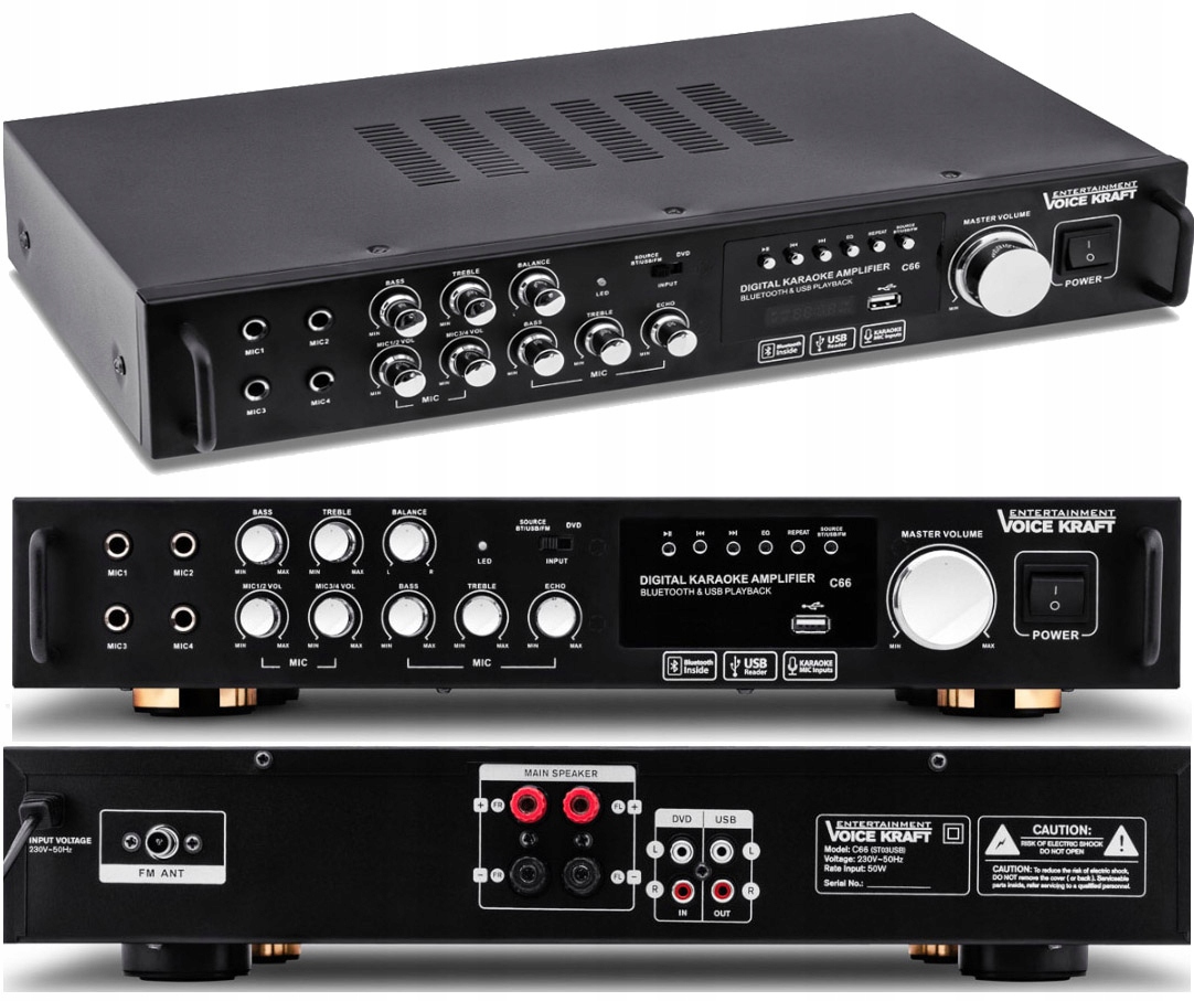 Широкий функціонал пристрою забезпечить максимум розваг і зробить його незамінним елементом кожного домашнього свята. Без сумніву, найпривабливішою особливістю набору є функції радіо тюнера, музичного плеєра, bluetooth ікараоке. Після придбання та підключення мікрофонів підсилювач дозволить кожному поділитися своїми вокальними здібностями і дозволить довго насолоджуватися ефектом веселощів.