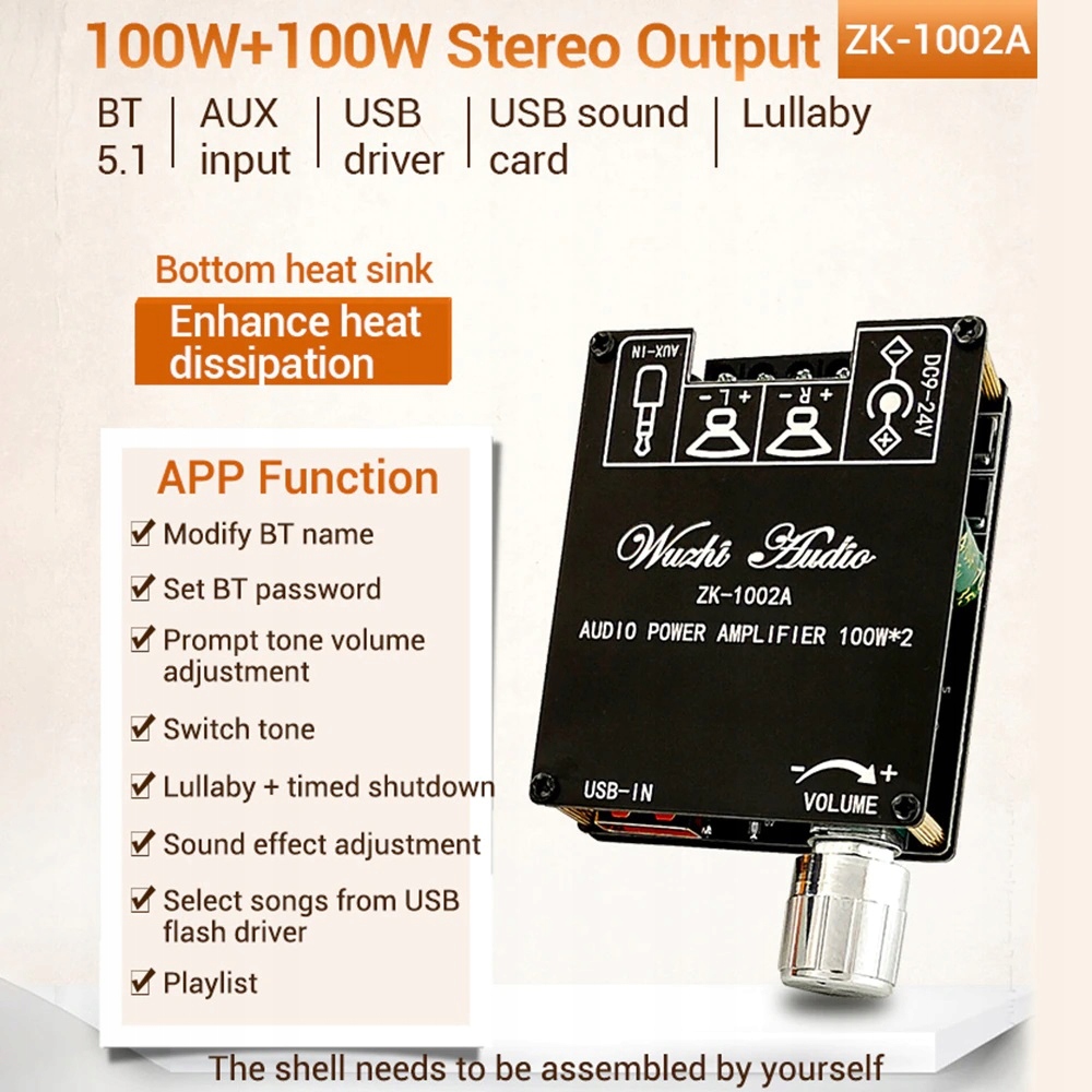 1 * ZK-1002a аудіо карта Bluetooth для модуля підсилювача цифрового живлення