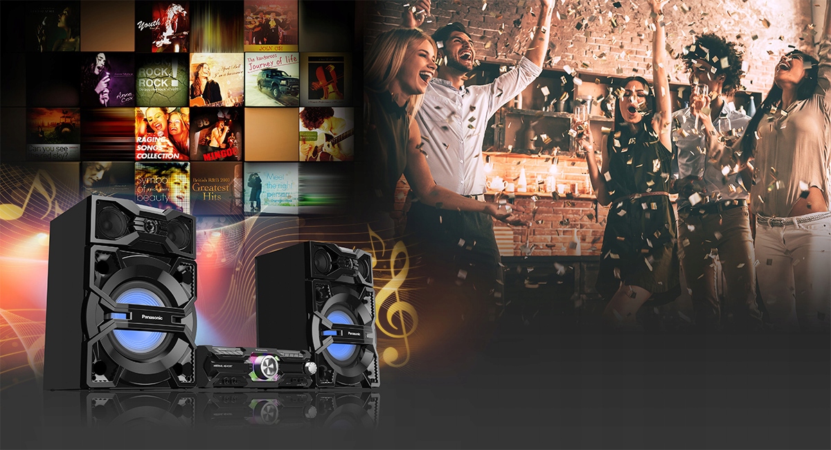 Програма DJ Jukebox / MAX Juke Збережіть улюблену музику зі свого смартфона у внутрішню пам’ять*, щоб оживити святкування. Пристрій не тільки має внутрішню пам'ять (4 ГБ), яка може зберігати 1000 пісень, але також оснащений функцією DJ Jukebox, яка дозволяє відтворювати музичні файли з внутрішньої пам'яті або USB-пристрою та мікшувати їх. *Лише для особистого використання. Потрібна програма Panasonic MAX JUKE і бездротова технологія Bluetooth®. Щоб використовувати програму MAX Juke, у вас повинен бути встановлений пристрій Android™ версії 4.1 або новішої. Додаток DJ Jukebox / MAX Juke Збережіть свою улюблену музику зі смартфона у внутрішню пам’ять*, щоб оживити свято. Пристрій не тільки має внутрішню пам'ять (4 ГБ), яка може зберігати 1000 пісень, але також оснащений функцією DJ Jukebox, яка дозволяє відтворювати музичні файли з внутрішньої пам'яті або USB-пристрою та мікшувати їх. *Лише для особистого використання. Потрібна програма Panasonic MAX JUKE і бездротова технологія Bluetooth®. Щоб використовувати програму MAX Juke, у вас повинен бути встановлений пристрій Android™ версії 4.1 або новішої.
