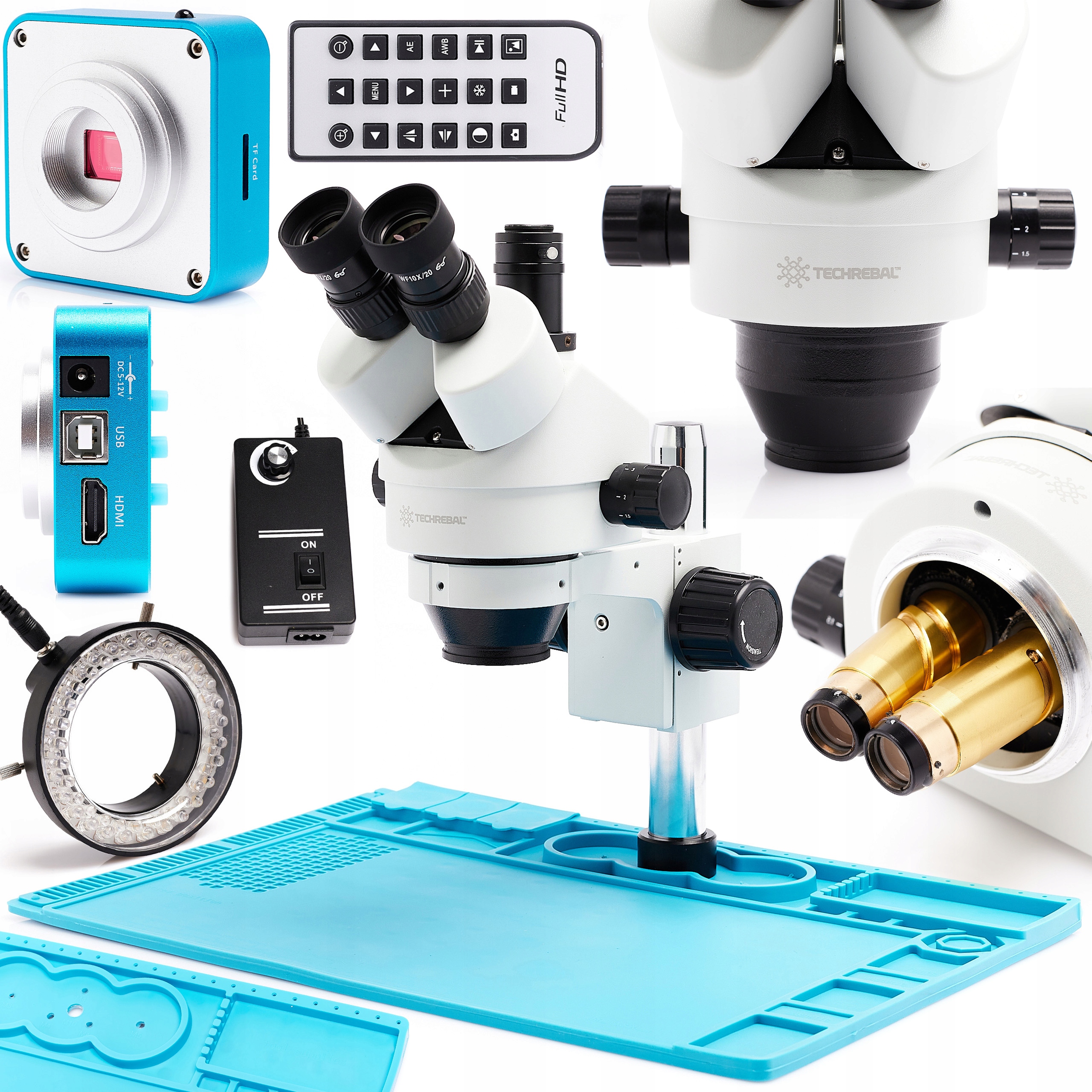 1️⃣ Тринокулярний стереоскопічний мікроскоп Techrebal 10HT у комплекті
