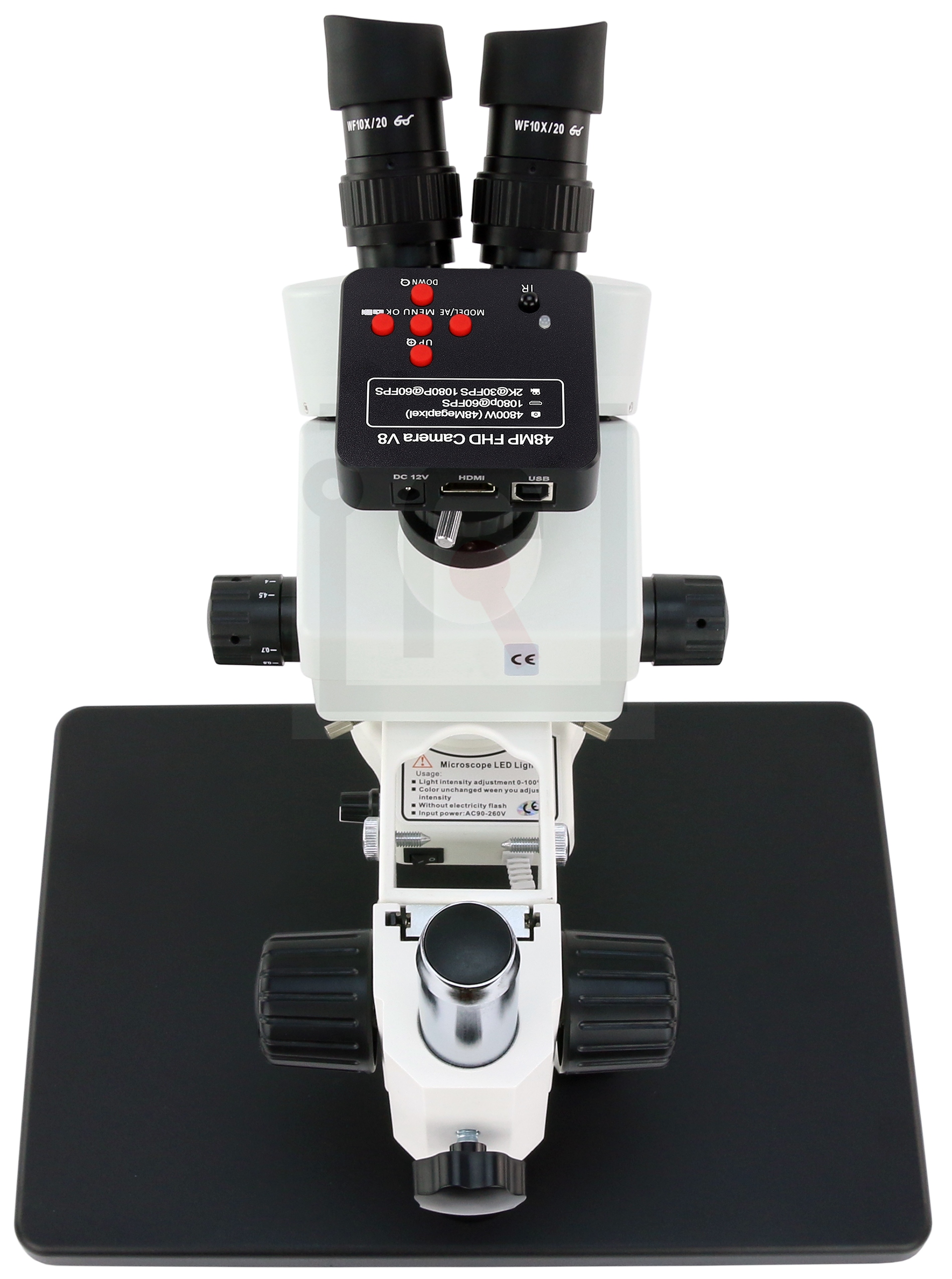 - тринокулярний стереомікроскоп 7-45x з ручкою, що обертається на 360°,