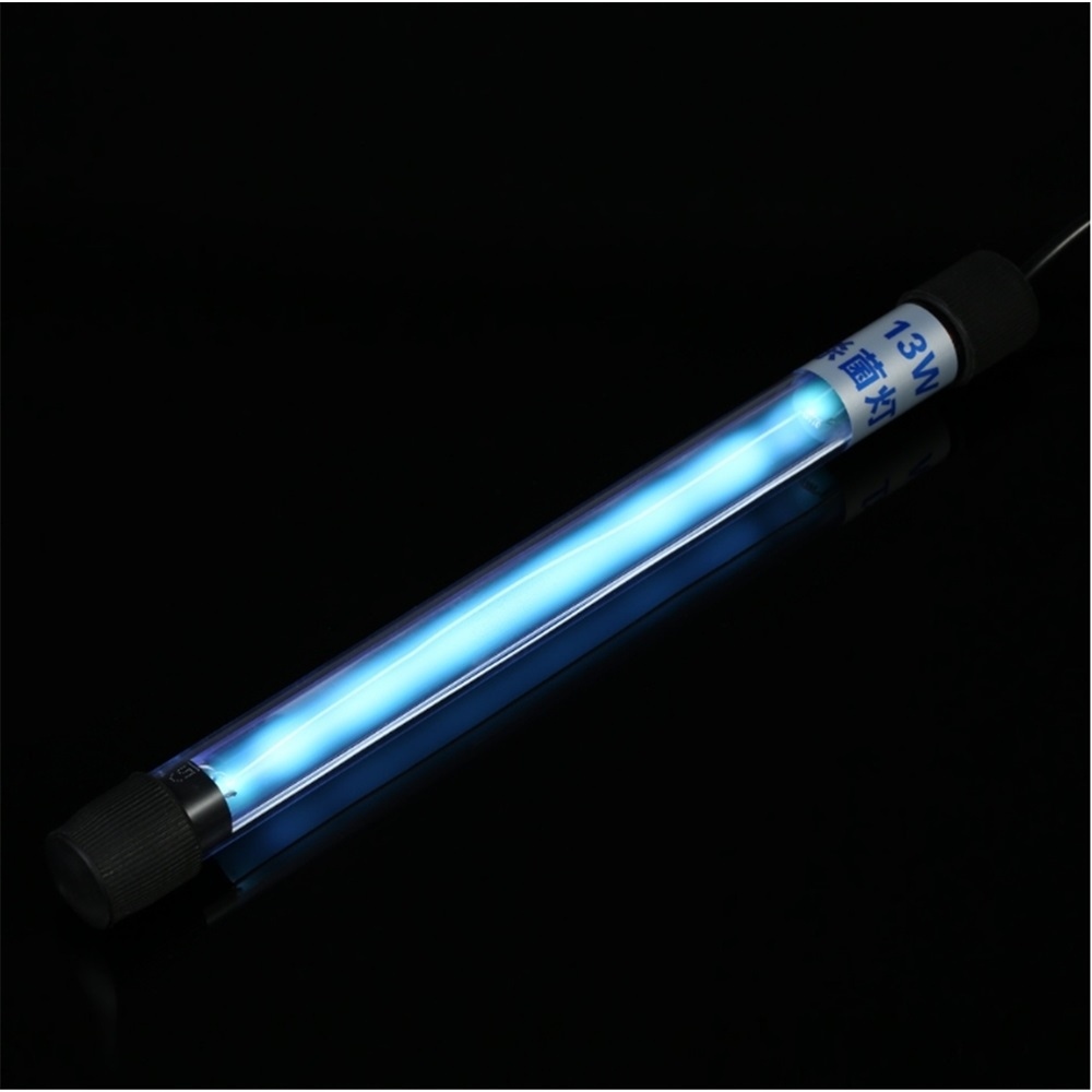 ➡ УФ -лампа - УВК, тобто акваріумний стерилізатор. Внутрішнє освітлення для використання в акваріумах, свердловинах або фільтрах. Він має присоску та перемикач, який сидить на довгому з очищеною водою (зелена вода)