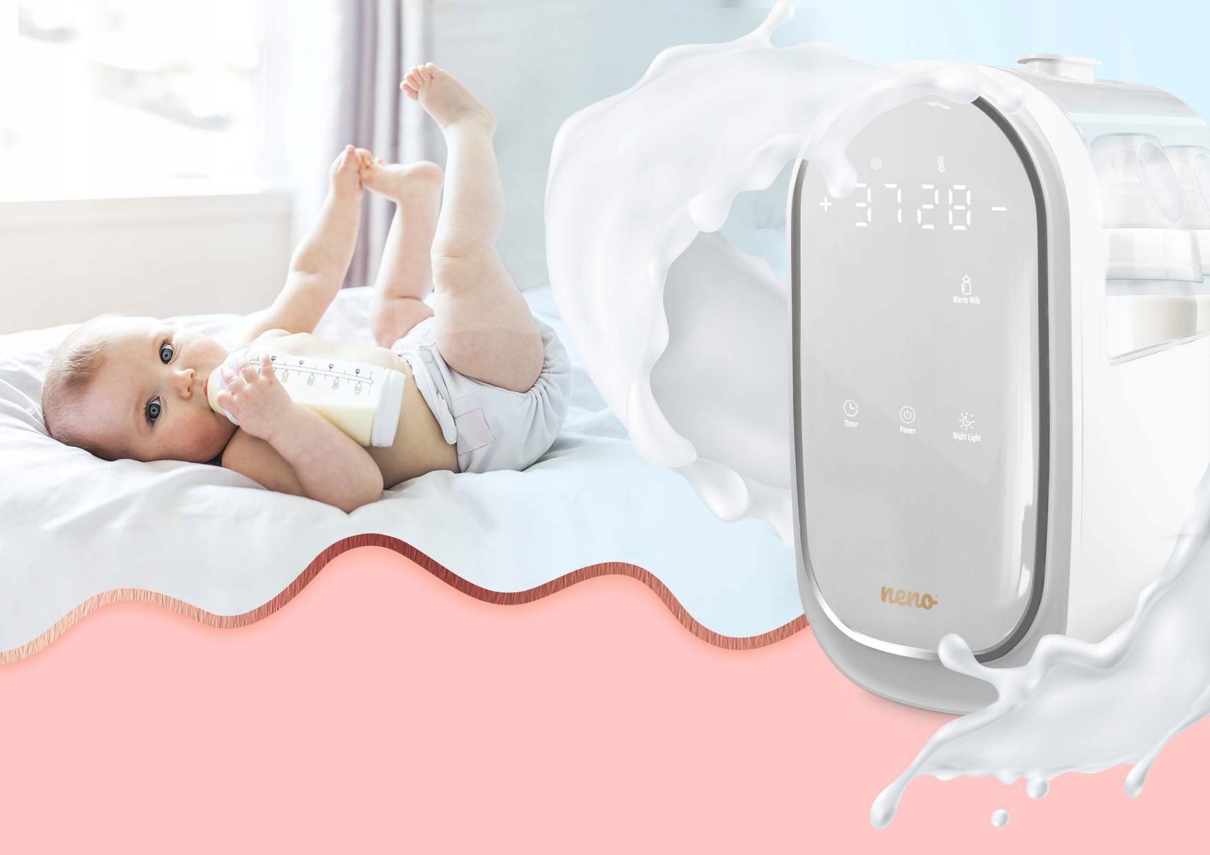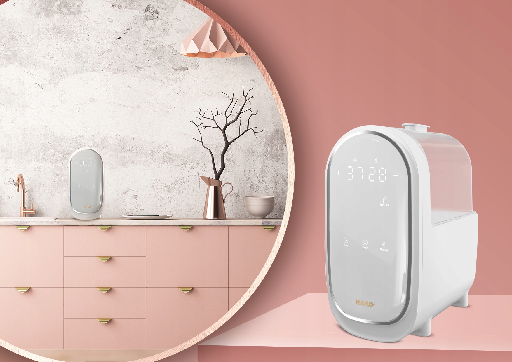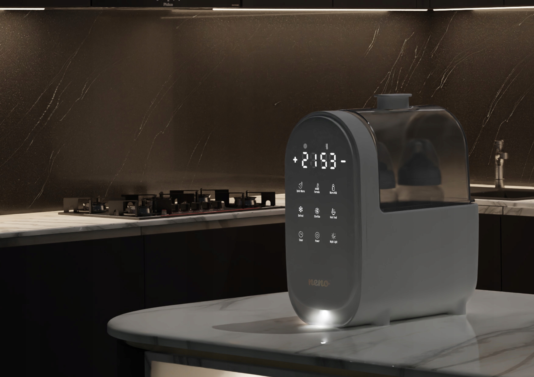 Neno Lindo — це ексклюзивний продукт, який підходить до сучасних кухонь у відтінках білого, дерев’яного та чорного. Його стильний сучасний зовнішній вигляд робить його прикрасою будь-якої кухонної стільниці. Потягніться до готової пляшечки молока ідеальної температури, щоб дати своїй дитині щоразу, коли це буде потрібно.