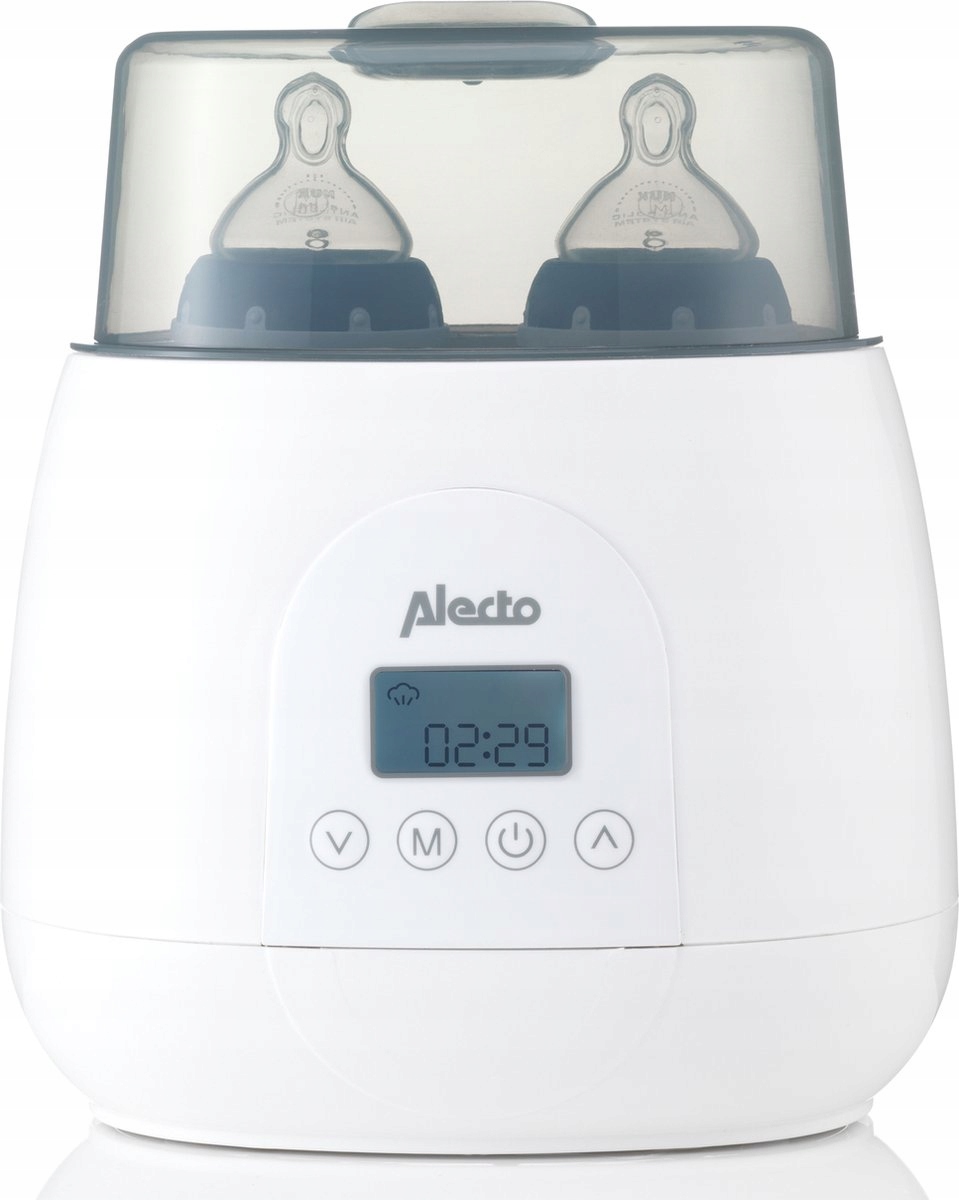 Коли прилад досягає потрібної температури, він автоматично вимикається, зберігаючи якомога більше вітамінів і поживних речовин. . Просте управління завдяки дисплею, який показує, скільки часу триватиме нагрівання. Також підходить для стерилізації пляшечок. Ще однією додатковою функцією є функція розморожування заморожених банок з молоком або продуктами. Доступний у білому кольорі.
