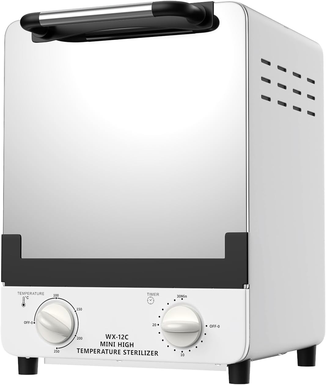 - [Коробка для високотемпературної стерилізації] – сухий стерилізатор без рідин чи інших середовищ. Температура нагріву може досягати 250°C, ємність 12 літрів достатньо для щоденної дезінфекції інструментів.