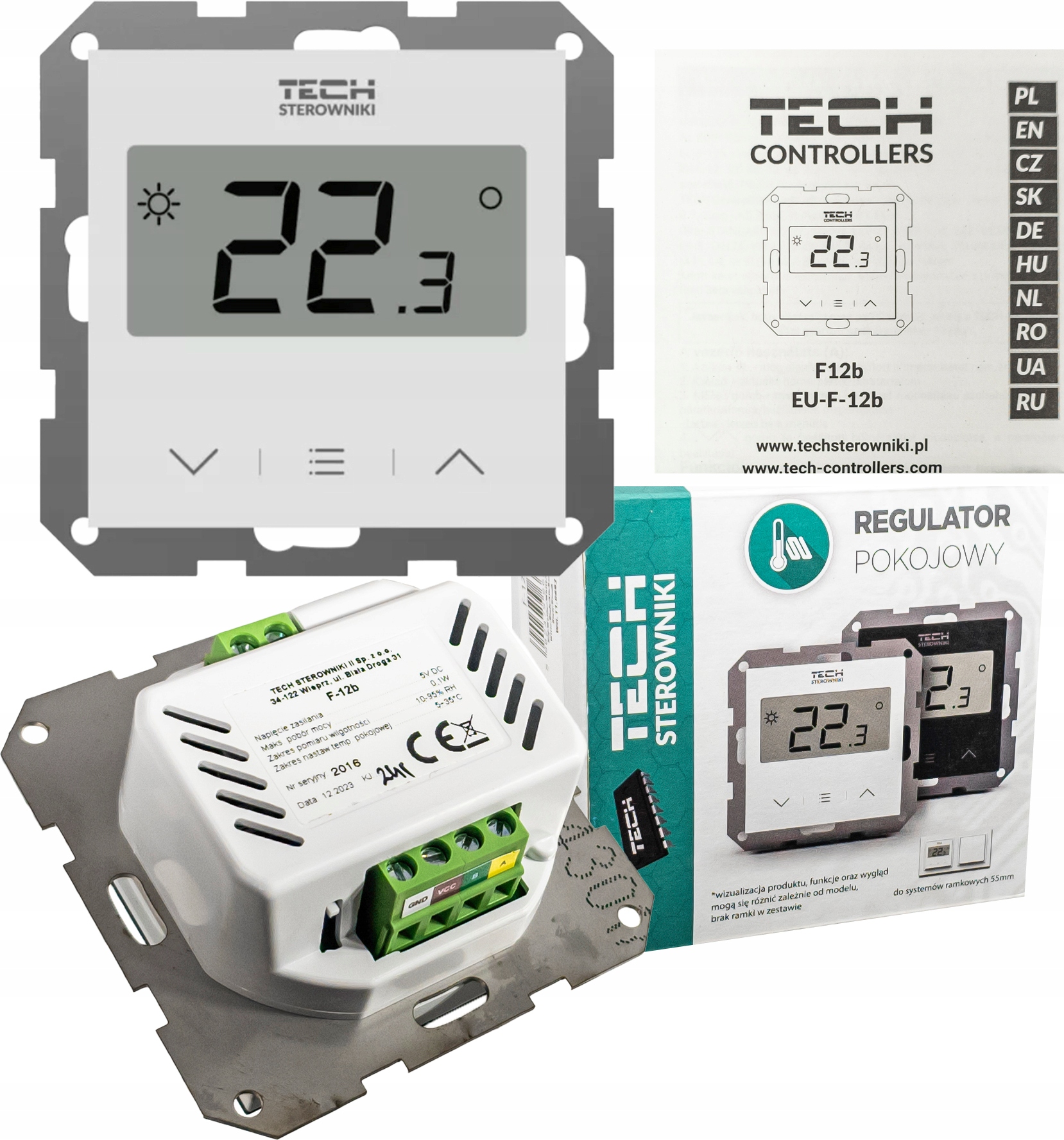 STEROWNIK REGULATOR TERMOSTAT POKOJOWY PODTYNKOWY BIAŁY F-12B TECH L-X
