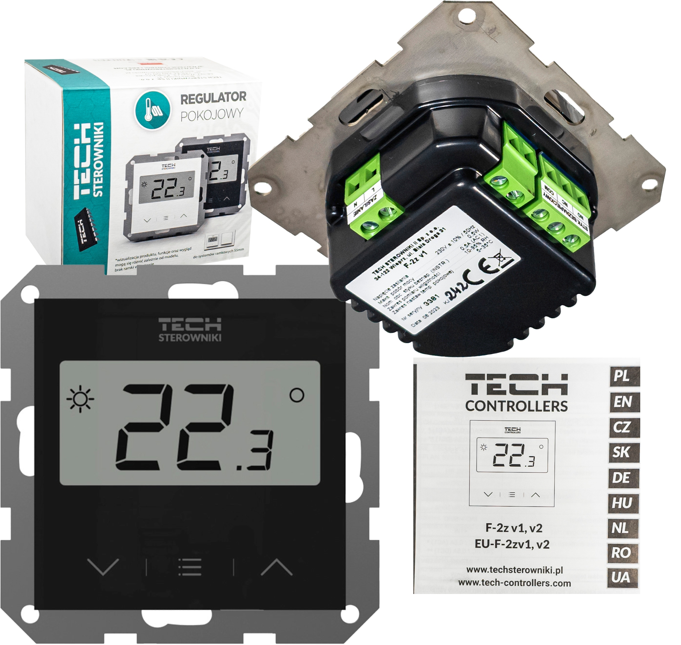 STEROWNIK REGULATOR TERMOSTAT POKOJOWY PRZEWODOWY CZARNY F-2z v1 TECH