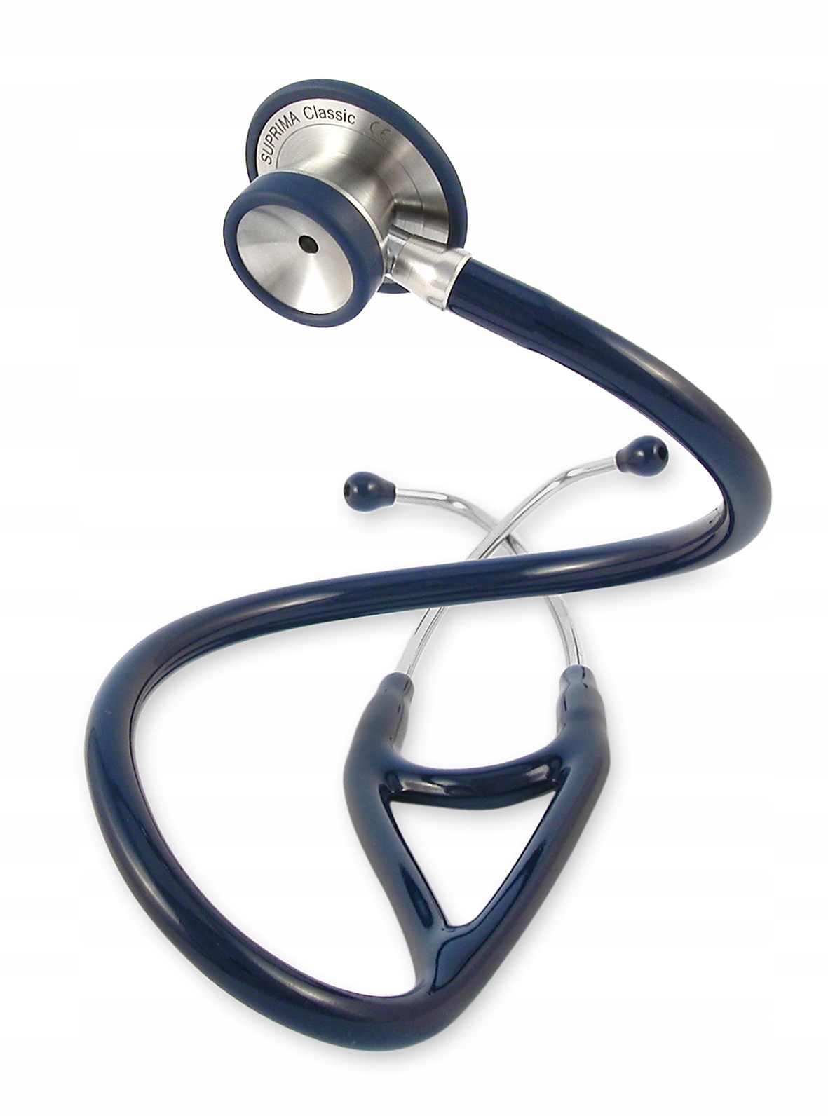 SUPRIMA CLASSIC — стетоскоп для внутрішньої медицини з класичною двосторонньою головкою в системі мембрана/лійка, призначений для обстеження дорослих пацієнтів. Ідеально зроблена головка з винятковою акустичною герметичністю відмінно працює в складних умовах, викликаних зовнішніми шумами. Стетоскоп із сильним акустичним підсиленням, що передає звуки в широкому діапазоні протестованих частот (50-1500 Гц).