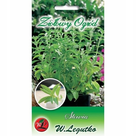 Стевія Легутко містить 0,01 г насіння та інформацію про термін зберігання посіву та загальні правила вирощування.
