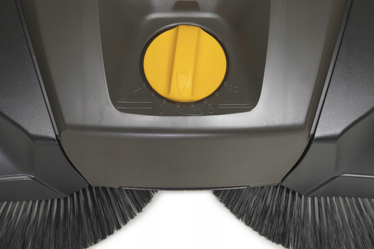 Підмітальна машина оснащена 8-ступінчастим регулюванням висоти щітки. Робоча висота змінюється за допомогою ергономічної ручки, розташованої у верхній частині корпусу пристрою. Крім того, великі гумові шини зі спеціальним протектором гарантують ідеальне керування машиною навіть на нерівній місцевості.