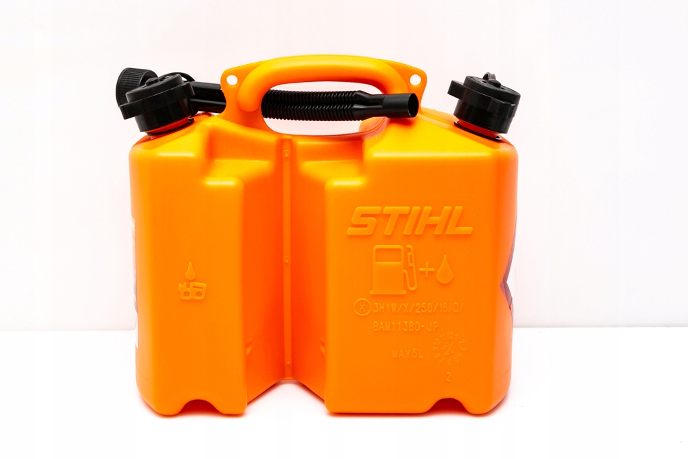 Практична каністра з однією газовою камерою, а друга - на нафту. Каністра фургонів 5L /3L включає на фотографії одну довгу інфузію, яка дозволить нам вливати паливо в кожен тип обладнання, не втрачаючи краплі та не забруднюючи навколишнє середовище. Подвійний контейнер на 5 літрів палива та 3 л масла для ланцюгових пил. Має сертифікат ООН - інфузійна нитка відповідає системам наповнення StiHL.