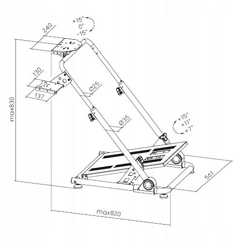 - >Діапазон нахилу панелі педалей: 7°/11°/15°